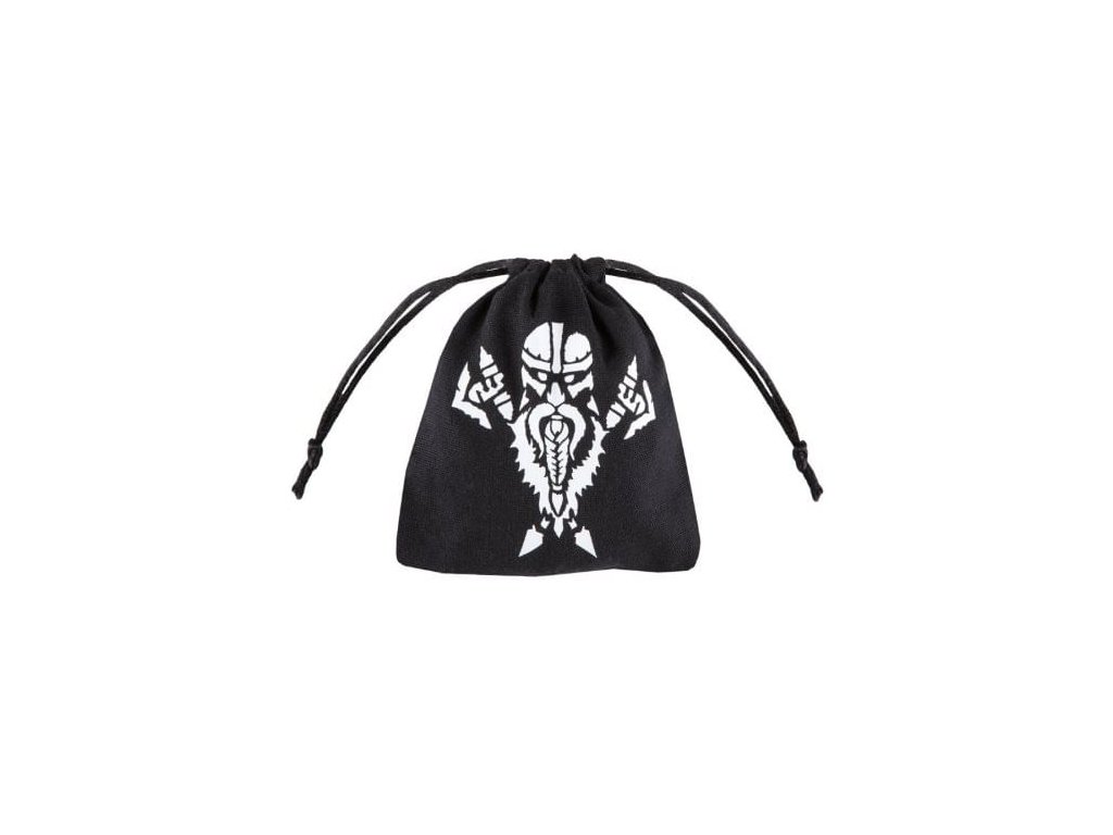 Plátěný stahovací váček na kostky zdobený znakem Black Dwarven - z kabátu trpaslíka, který svým kladivem vyrubal kamenné kostky ze skály tajemné Černé hory. Žádná z těchto mocných kostek se nedochovala dodnes, jen tento váček.