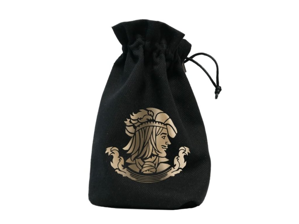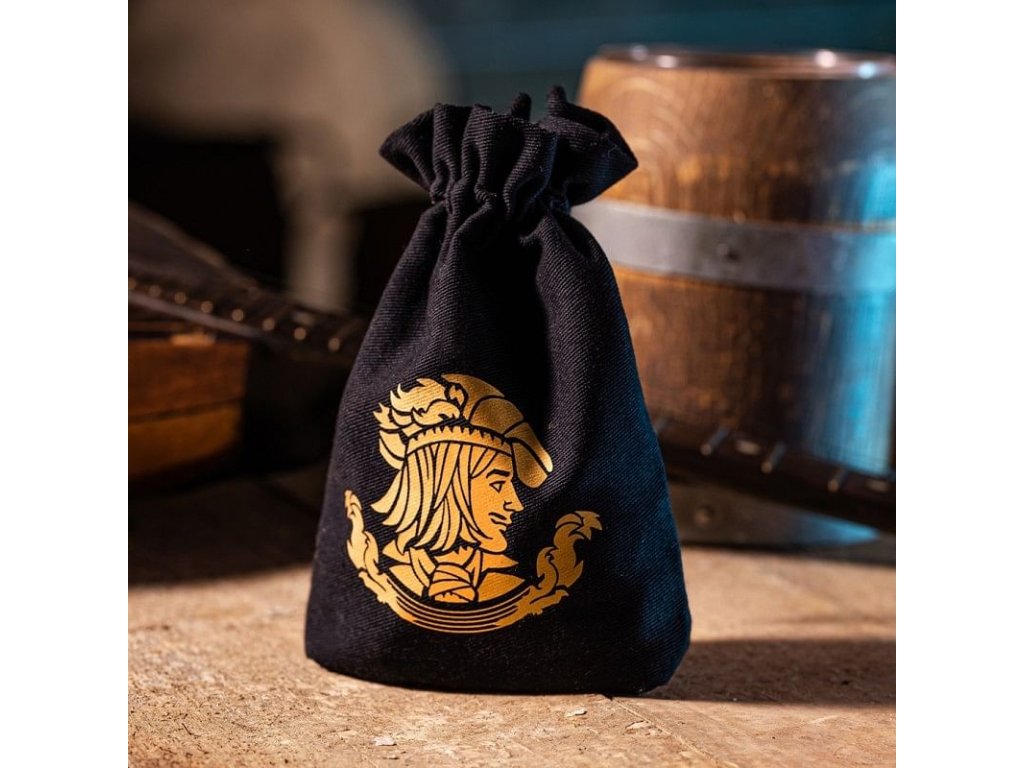 Černý bavlněný váček na kostky se zlatým symbolem barda Marigolda, věrného přítele zaklínače Geralta z Rivie. Pytlík se stahuje pomocí tkaničky s brzdou a pojme až pět sad kostek.