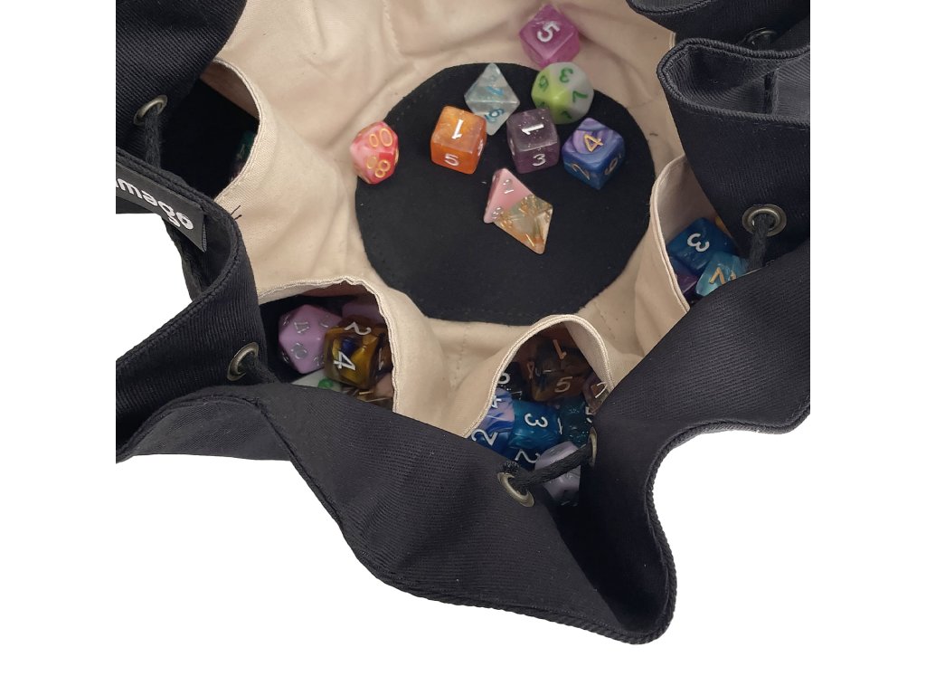 Vak na kostky s házecím středem je praktický a originální doplněk pro všechny nadšence deskových her, RPG a wargamingu.Tento speciální vak jsme navrhli tak, aby umožnil pohodlné uchovávání obrovského množství kostek a zároveň nabízí zábavný a funkční házecí střed ze štípenky. Využívá se nejen pro bezpečné a přehledné uskladnění kostek, ale i pro jejich snadné a kontrolované házení během hry. Vnitřní část vaku je vybavena měkkou bavlnou, která zabraňuje poškození kostek, zatímco samotný házecí střed umožňuje přesné a rovnoměrné vržení. Ideální pro hráče, kteří si chtějí užít každou část hry s ještě větším komfortem. Po obvodu vaku je 8 trojuhlelníkových kapes, kam schováš celé sady!Ať už se vydáváš za dobrodružstvím do Baldur s Gate nebo do Asterionu, tenhle vak tvé drahocenné kostky ohlídá s pečlivostí, za níž ručíme.