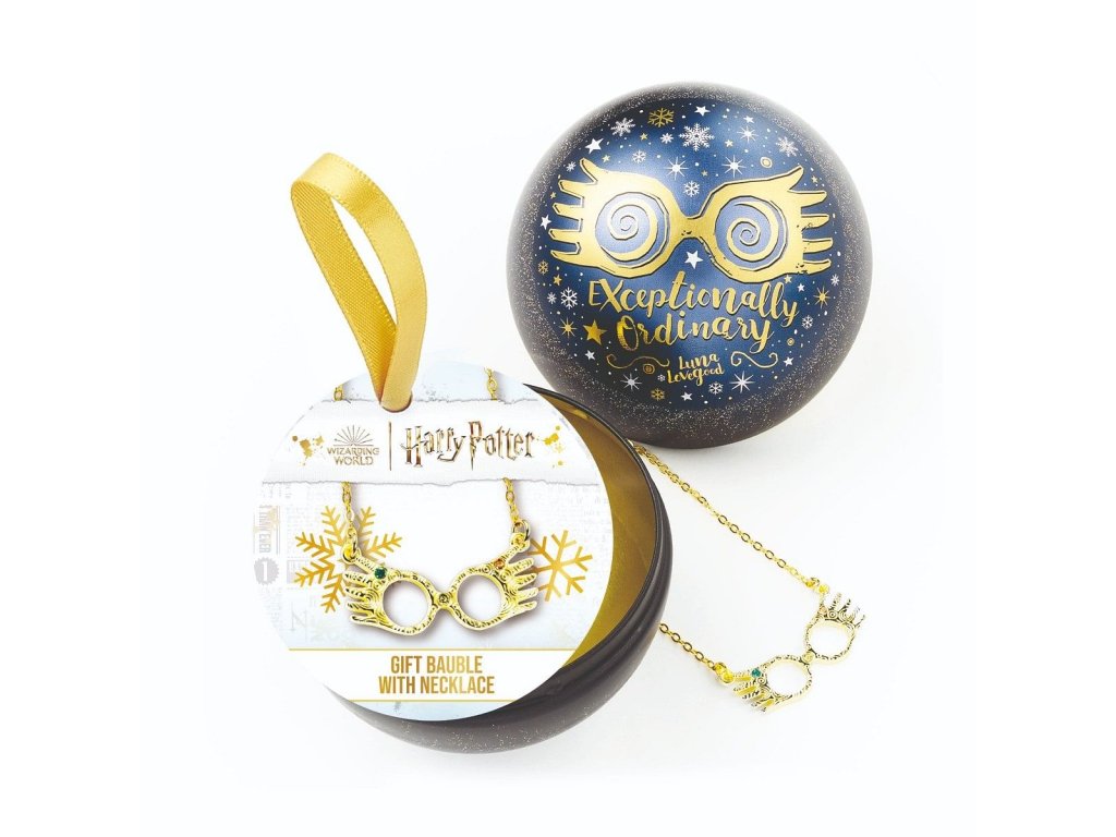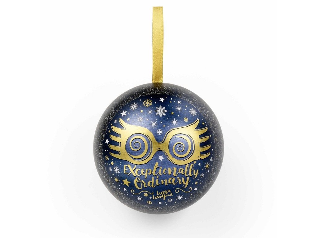 Modrá vánoční koule věnovaná Lence Láskorádové v sobě ukrývá dárek pro fanoušky knih a filmů o Harrym Potterovi - hezký přívěsek v podobě Lenčiných brýlí. Řetízek náhrdelníku je dlouhý 40 cm, s možností nastavit o dalších 5 cm. Nejedná se o hračku.