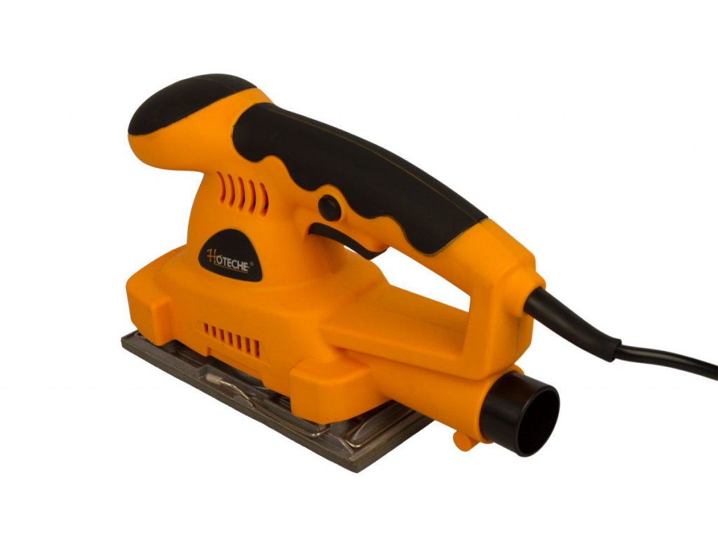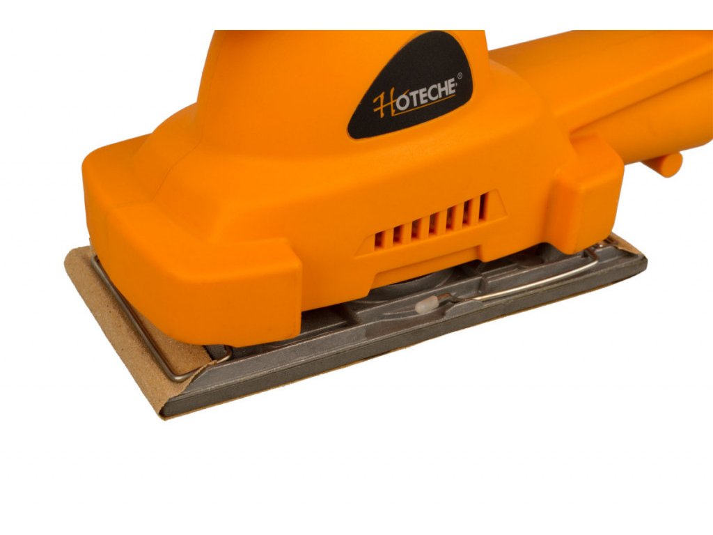 Vibrační bruska značky Hoteche s příkonem 180 W a otáčkami 11000 ot./min. je vhodná pro broušení dřevěných materiálů, kovů, laků či plastů.