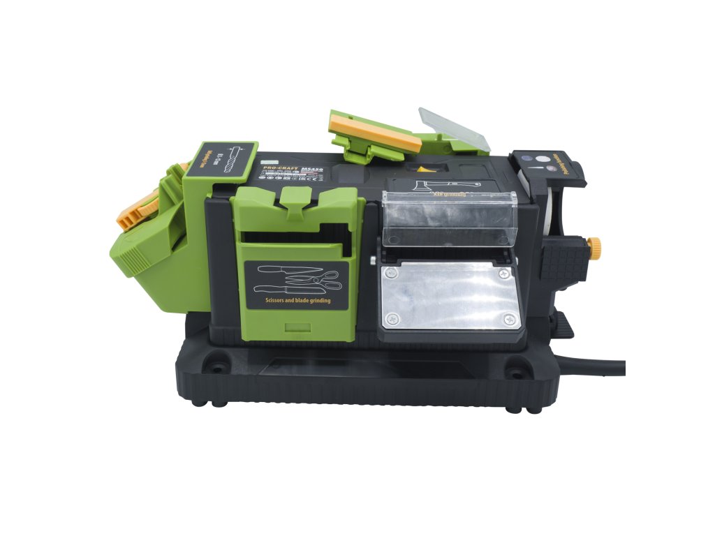Víceúčelová ostřička Procraft MS450 je určena k ostření nožů nebo nůžek, tvarování a ostření špiček spirálových vrtáků, hoblovacích nožů, broušení břitů a sekáčů. Diamantový brusný kotouč a robustní motor s výkonem 200 W umožňuje vysokou kvalitu zpracování. Součástí balení je blok pro ostření sekáčů, dlát a čepelí, blok pro ostření vrtáků, blok pro ostření nožů a nůžek, blok pro ostření seker, blok na leštění, maticový a šestihranný klič. Balení karton.