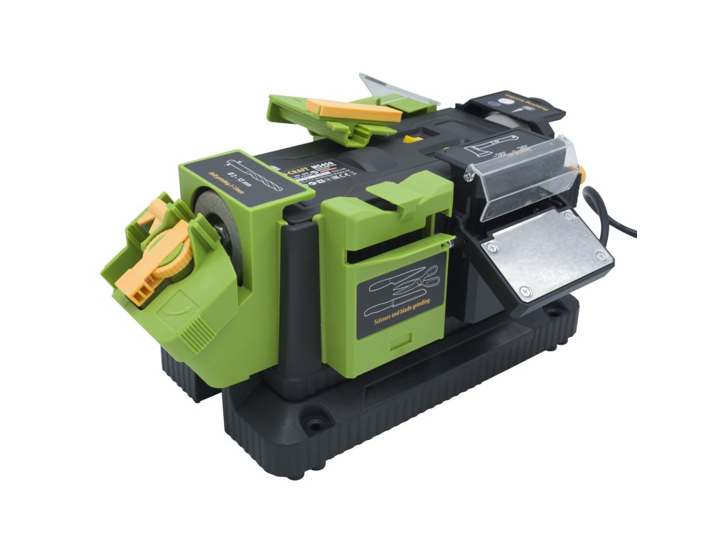 Víceúčelová ostřička Součástí balení: blok pro ostření sekáčů, dlát a čepelí, blok pro ostření vrtáků, blok pro ostření nožů a nůžek, maticový a šestihranný klič. Příkon: 200 W Otáčky: 0-5600/min-1 Průměr brusného kotouče: 53 mm Hmotnost, 2,4 kg