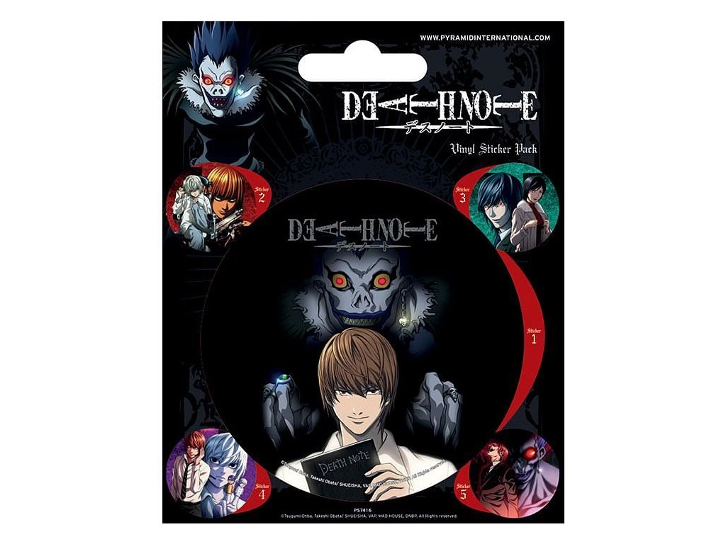 Sada obsahuje 5 ks kulatých vinylových samolepek s motivy z japonského animovaného seriálu Death Note - Zápisník smrti. Samolepky můžete umístit např. na laptop či chytrý telefon.
