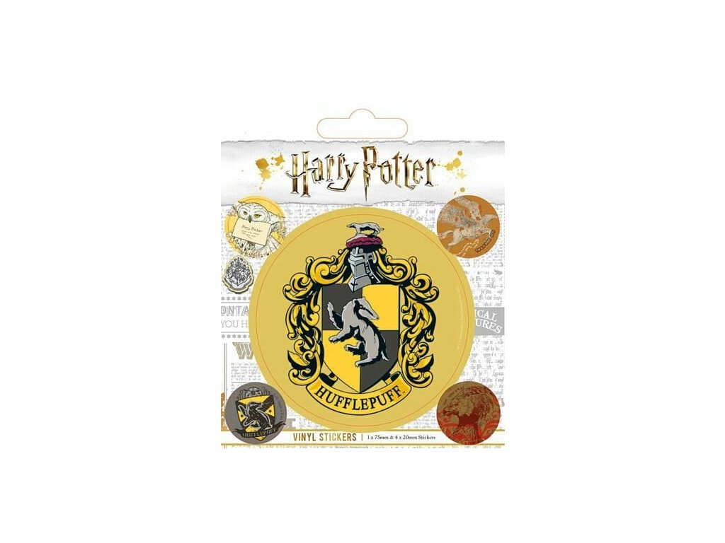 Sada obsahuje 5 vinylových samolepek (1 velkou a 4 menší) s obrázky na motivy Mrzimoru (Hufflepuff), jedné z kolejí na slavné škole čar a kouzel v Bradavicích.