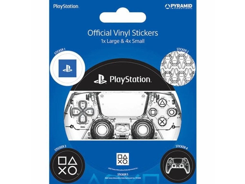 Sada obsahuje 5 ks vinylových samolepek (1 větší - 7,5 cm a 4 menší - 2 cm) s grafikou herní konzole PlayStation. Vyzdobte si stěny své herny, konzoli, smartphone nebo laptop oblíbenými motivy!