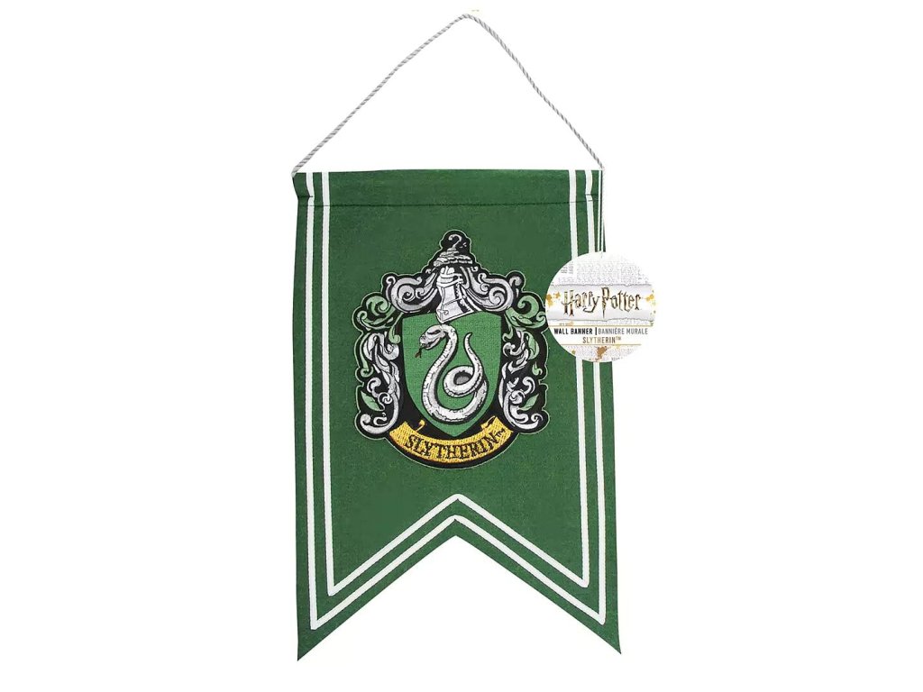 Nástěnná vlajka se znakem koleje Zmijozel z Bradavické školy čar a kouzel bude stylovou dekorací i dárkem pro ambiciózní fanoušky Harryho Pottera.