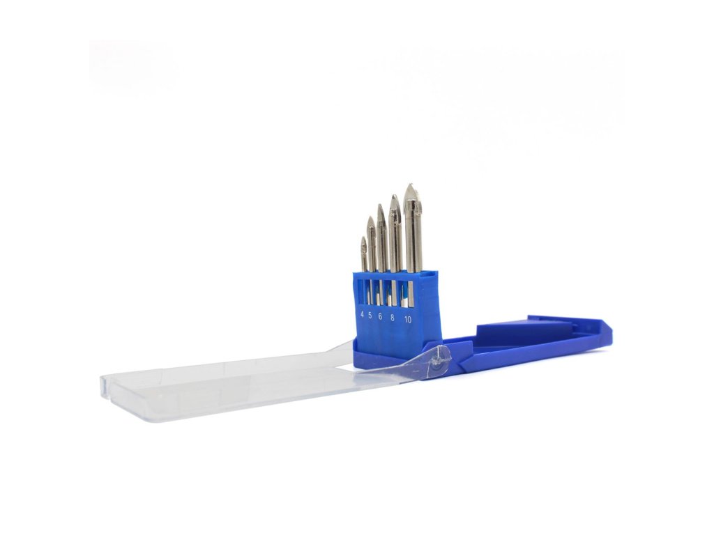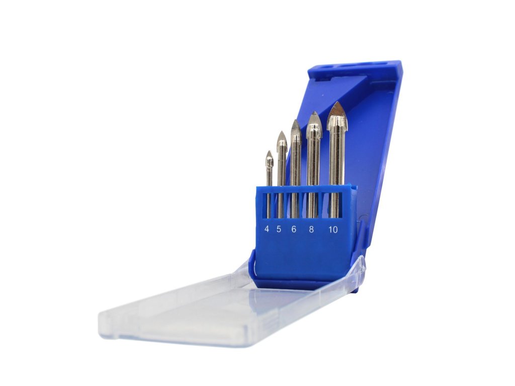 Vrták do skla a keramiku 2 břitě, sada 5 ks, 4/5/6/8/10 mm, YG6X