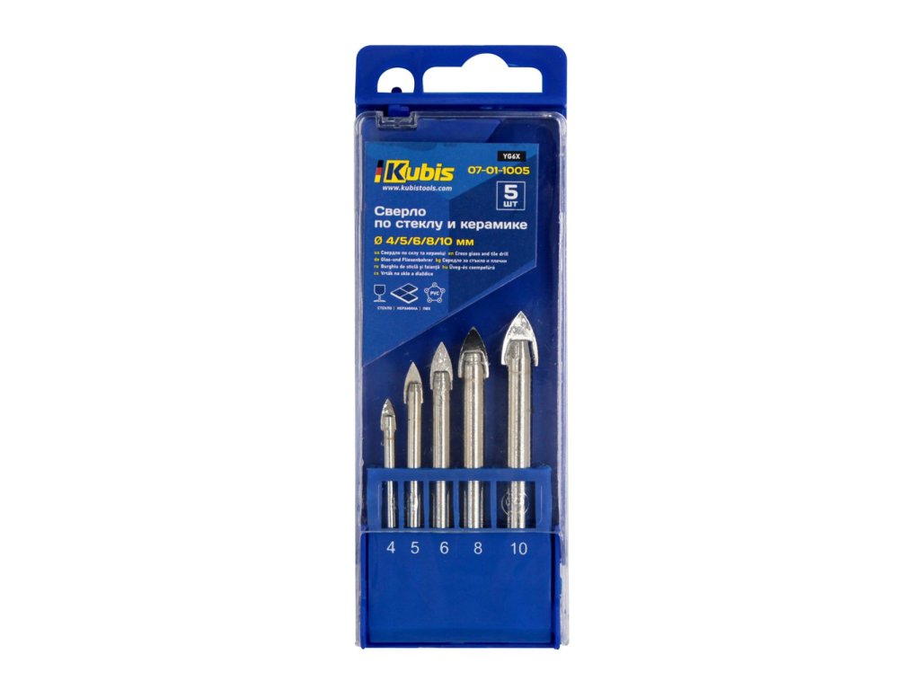 Vrták do skla a keramiku 2 břitě, sada 5 ks, 4/5/6/8/10 mm, YG6X | 07-01-1005