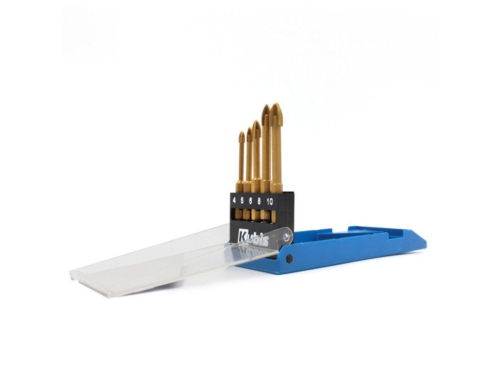 Vrták do skla a keramiku 4 břitě, sada 5 ks, 4/5/6/8/10 mm, TiN, YG6X | 07-01-2005