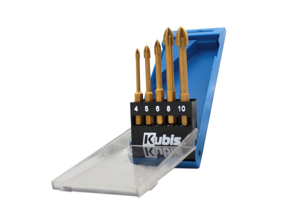 Vrták do skla a keramiku 4 břitě, sada 5 ks, 4/5/6/8/10 mm, TiN, YG6X