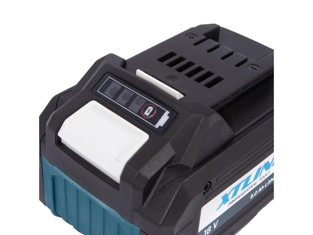 Li-Ion baterie s novým, velkokapacitním typem článků Samsung, zaručující vysoký výkon a dlouhou životnost při zachování kompatkních rozměrů. Baterie má indikaci pro kontrolu stavu nabití a pogumovaný povrch zaručuje jednoduchou manipulaci. Baterie je určena pro větší zátěž a nářadí s vyšší odběrem energie, jako je úhlová bruska, kotoučová pila, pneumatické kladivo apod.