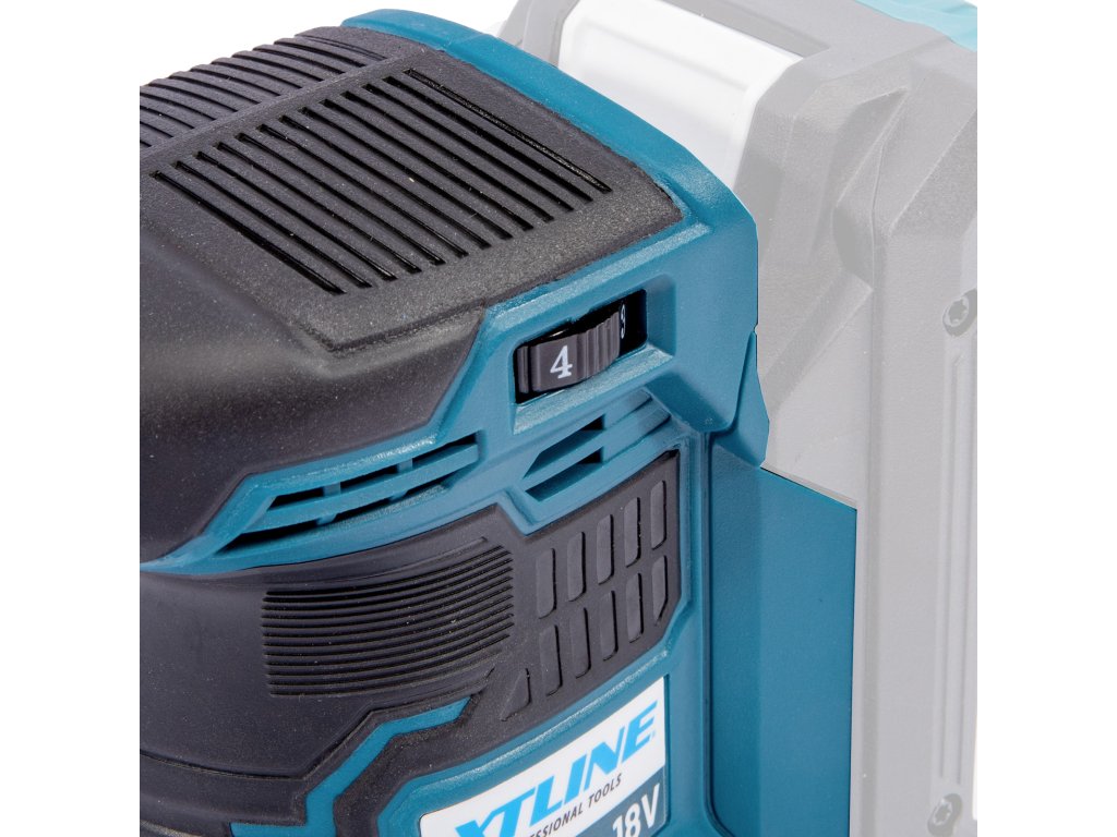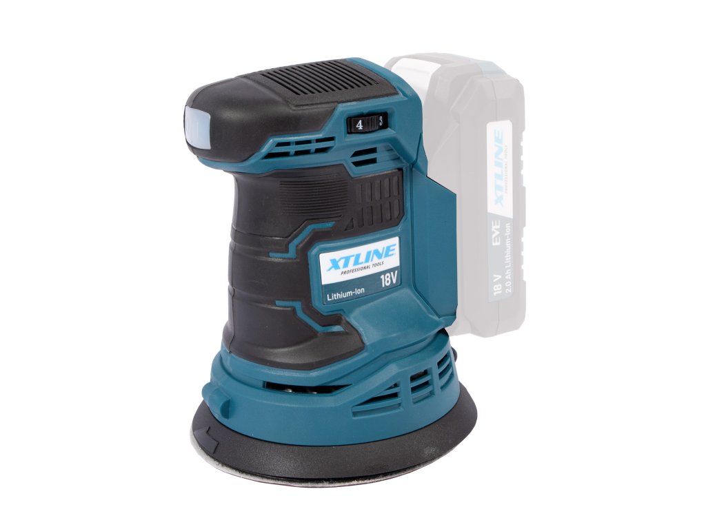 Akumulátorová excentrická bruska má výbornou ergonomickou konstrukci se dvěma plochami s měkkou gumovou tlumící vložkou pro různé možnosti uchopení. Bruska slouží k plošnému broušení různých materiálů, obrušování nátěrů a leštění. Možnost nastavení regulace otáček v 6 stupních. Má protiprachový spínač a osm otvorů v základně k odsávání prachu. Bruska je bez akumulátoru a nabíječky. Nabíječku a samostatný akumulátor je možné dokoupit zvlášť.