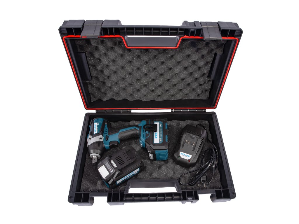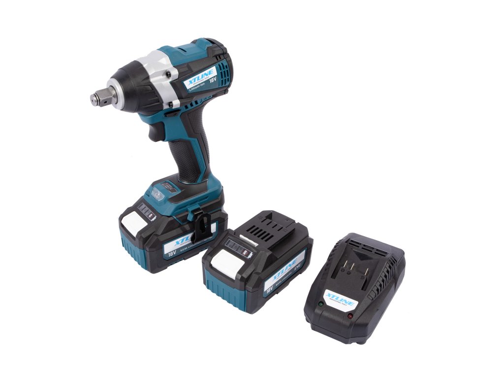 XTLINE Aku rázový utahovák na 1/2" hlavice bezuhlíkový 18 V + 2 baterie 5.0 Ah + nabíječka 3.5 A + box
