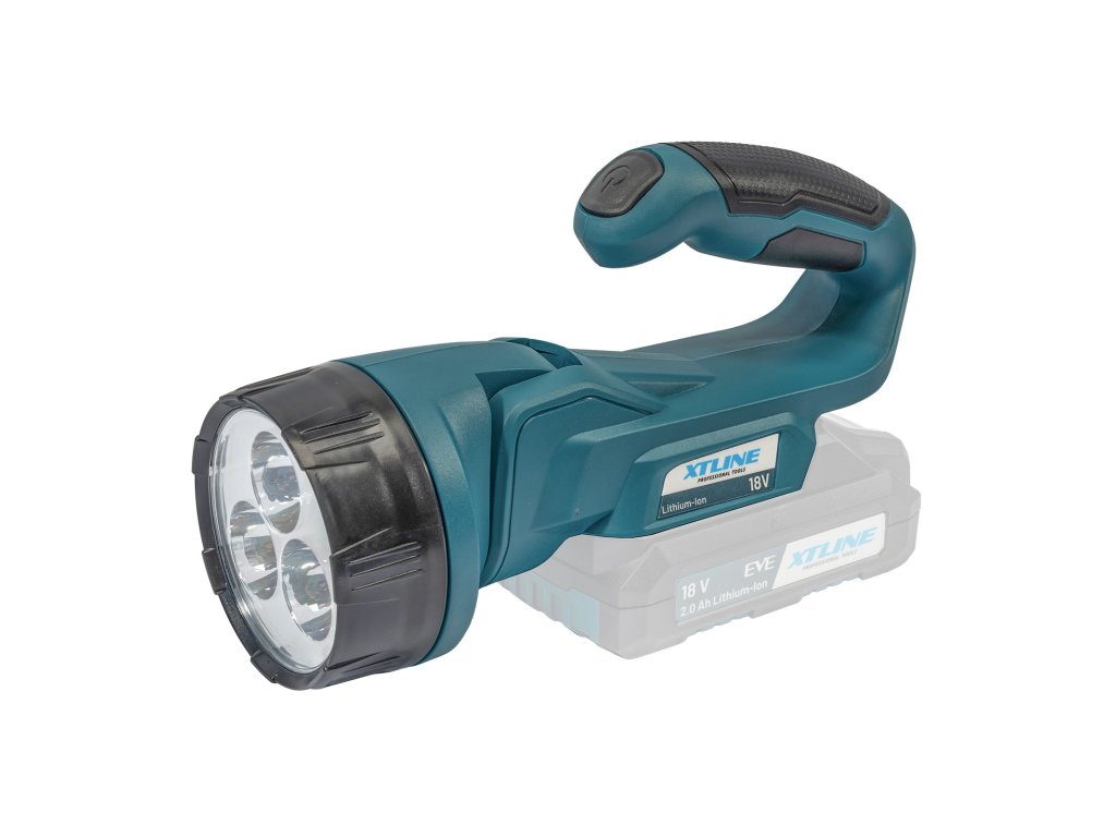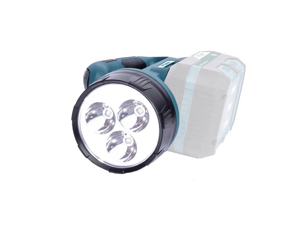 Akumulátorová svítilna je vybavená třemi vysoce kvalitními LED diodami o výkonu 3 W. Diody se vyznačují širokým úhlem svícení 90 stupňů a velkým světelným tokem 260 lumenů. Variabilní otočná hlava 90° - čtyři stupně nastavení. Svítilna je bez akumulátoru a nabíječky. Nabíječku a samostatné akumulátory je možné dokoupit zvlášť.