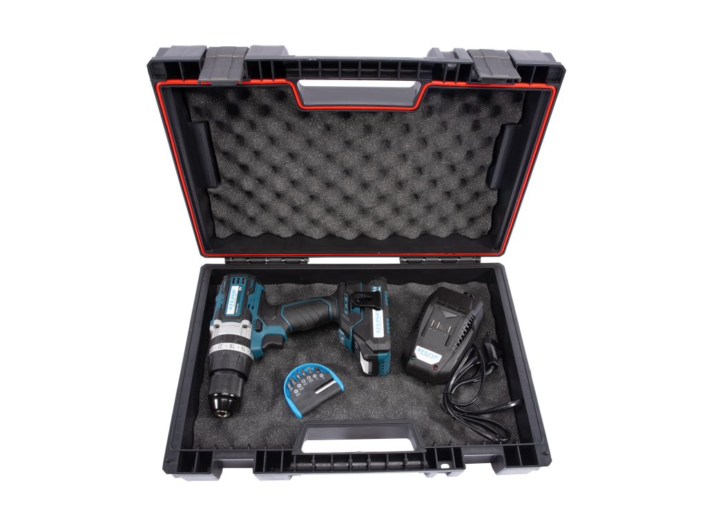 Akumulátorová bezuhlíková vrtačka je určena pro vrtání a šroubování dřevěných, kovových a stavebních materiálů. Vrtačku pohání dvourychlostní planetová převodovka s kovovými převody.
