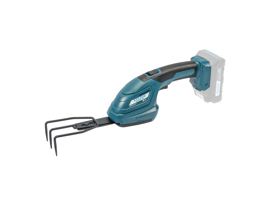 | Max. záběr: | nůžky na trávu 100 mm, nůžky na keře 200 mm / průměr 8 mm, hrábě 75 mm |