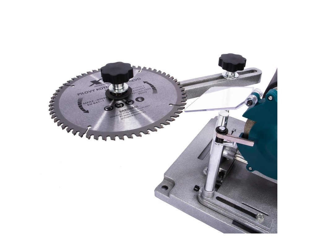 Bruska je určena pro přesné broušení pilových kotoučů. Lehce nastavitelný úhel zajišťuje přesné broušení.