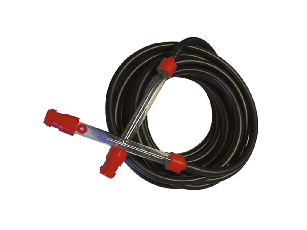 Klasická hadicová vodováha pro jednoduché vytyčení a přeměření roviny i přes rohy. Hadice naplněná vodou s dvěma průhlednými koncovkami pro snadný odečet výšky vodní hladiny.