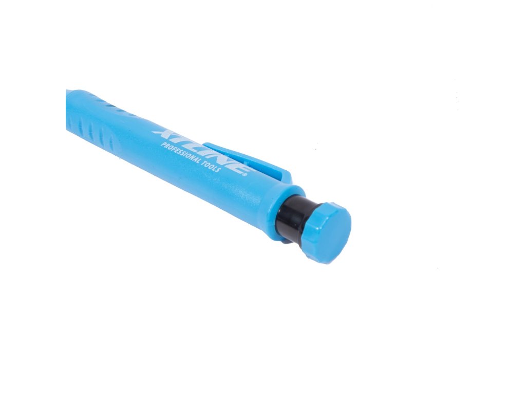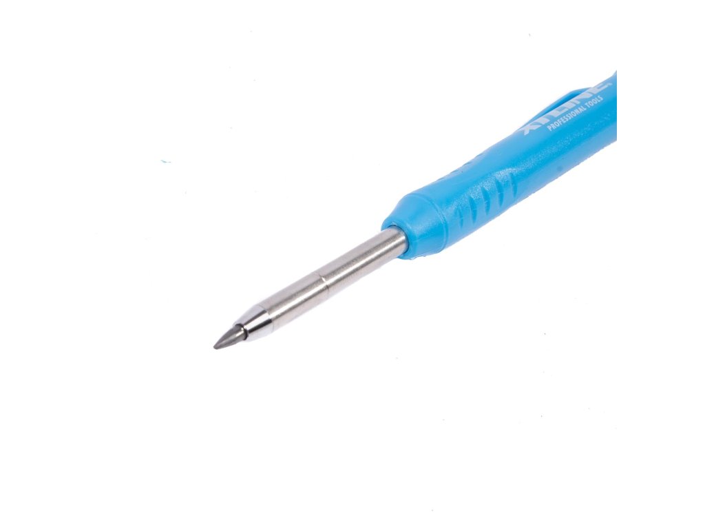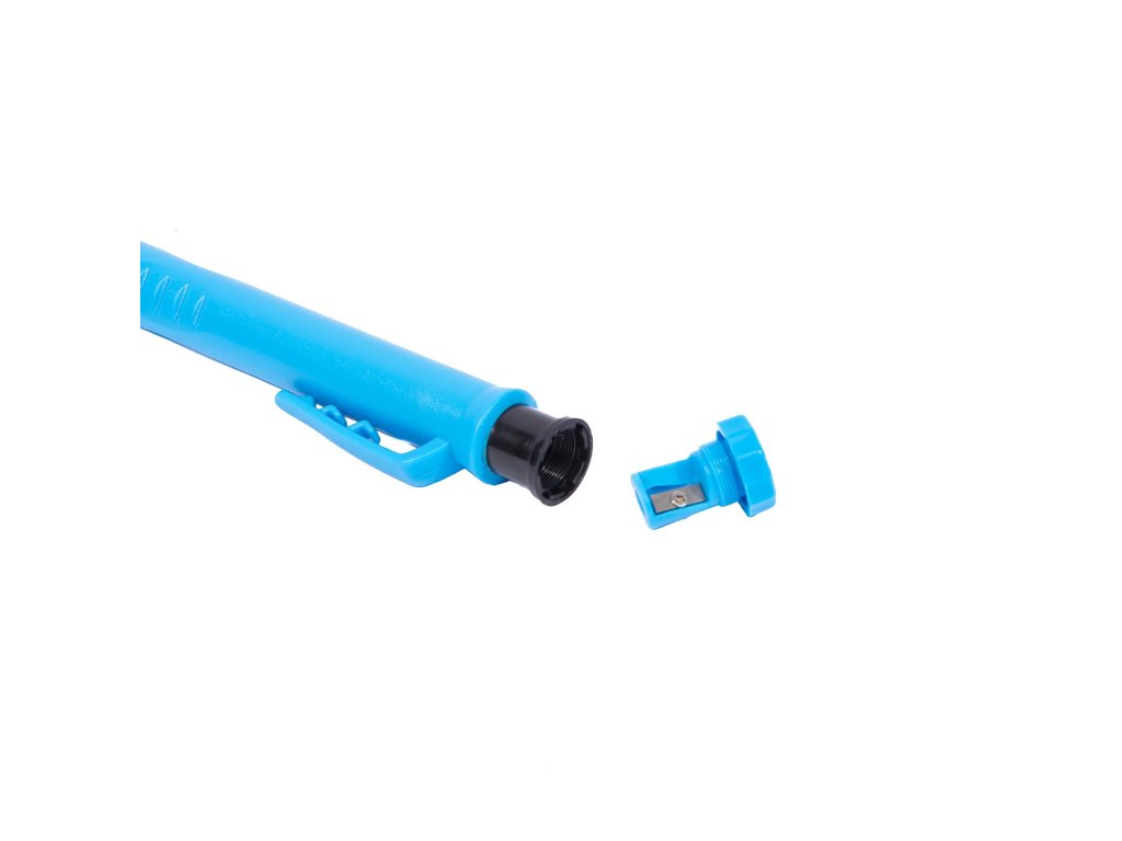 Tužka s mechanicky výsuvnou tuhou a ořezávátkem uloženým v praktickém pouzdře, díky kterému je tužka při práci stále po ruce. Tvar pouzdra zajišťuje, že tužka zůstane na svém místě i při pohybu. Kovový hrot je mechanicky odolný a jeho ztenčený profil umožňuje značení i v hlubších otvorech. Optimální výsuv se snadno nastavuje a náhradní tuhy lze jednoduše měnit.