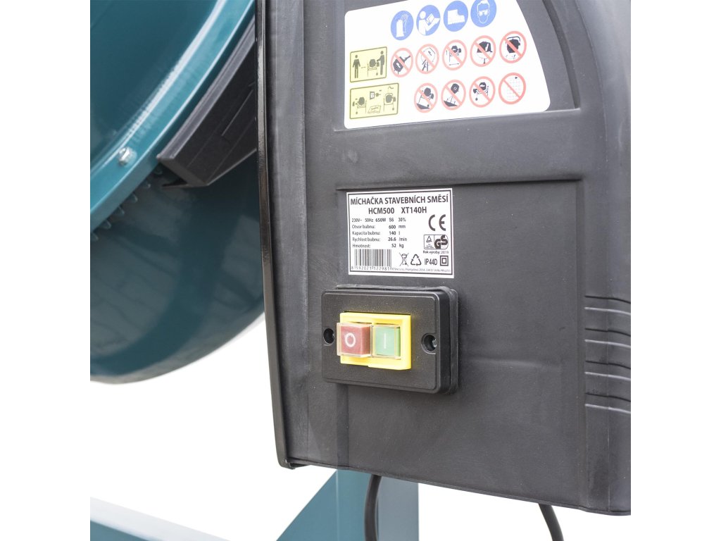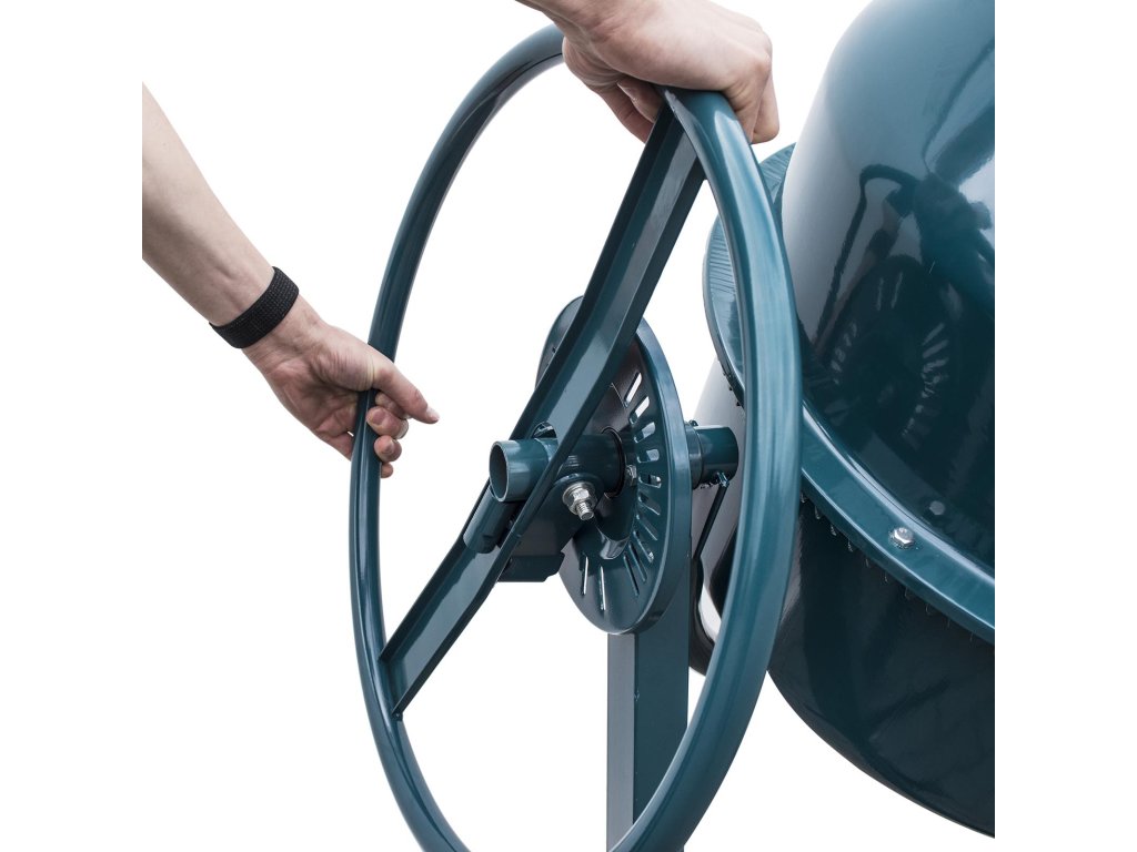 Stavební míchačka k míchání stavebních směsí, malt a jiných materiálů. Má možnost oboustranného vyklápění a je určena pro drobné stavby.