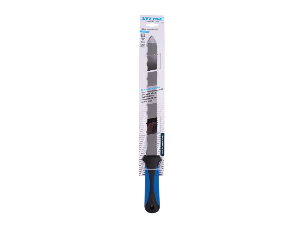 Oboustranný nůž na minerální vatu a polystyren. Díky speciálnímu ostří lehce proniká materiálem.