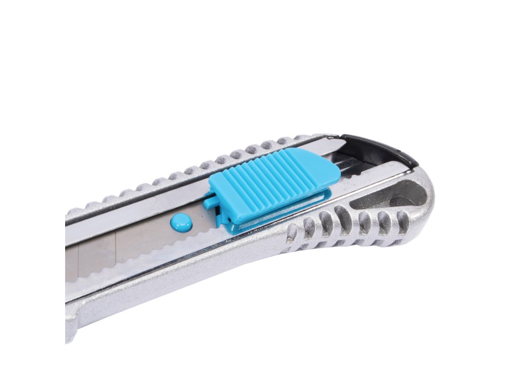 Hliníkový ulamovací nůž s kovovou vodící lištou.