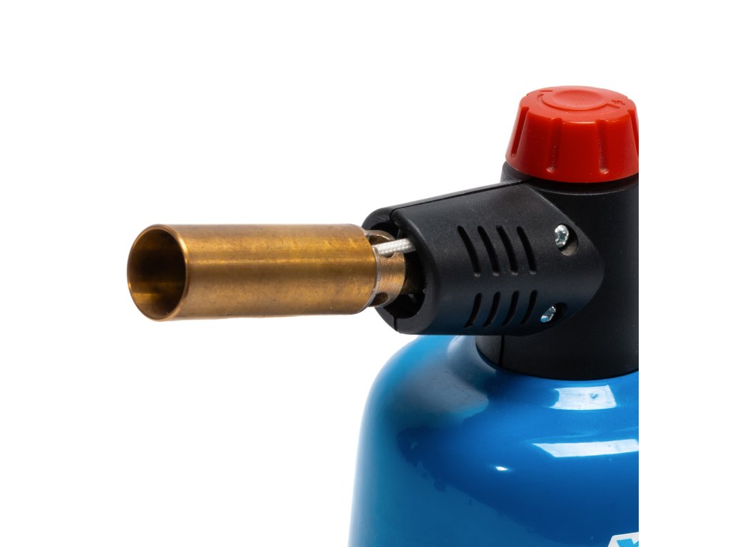 Pájecí souprava s piezo elektrickým zapalováním. Disponuje odolným kovovým obalem kartuše. Používá jednorázové propichovací kartuše a je vybavena tlačítkem na ovládání plamene.