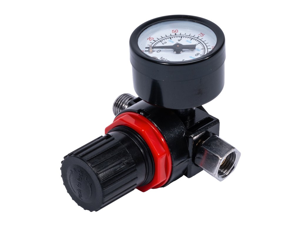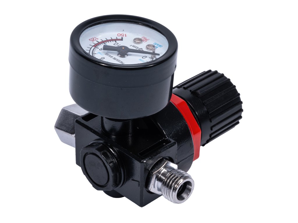 Regulátor pro přesné nastavení tlaku stlačeného vzduchu. Umožňuje plynulou regulaci a snadnou kontrolu aktuálního tlaku díky vestavěnému manometru. Ideální pro použití s pneumatickým nářadím, lakovacími pistolemi a dalšími zařízeními.