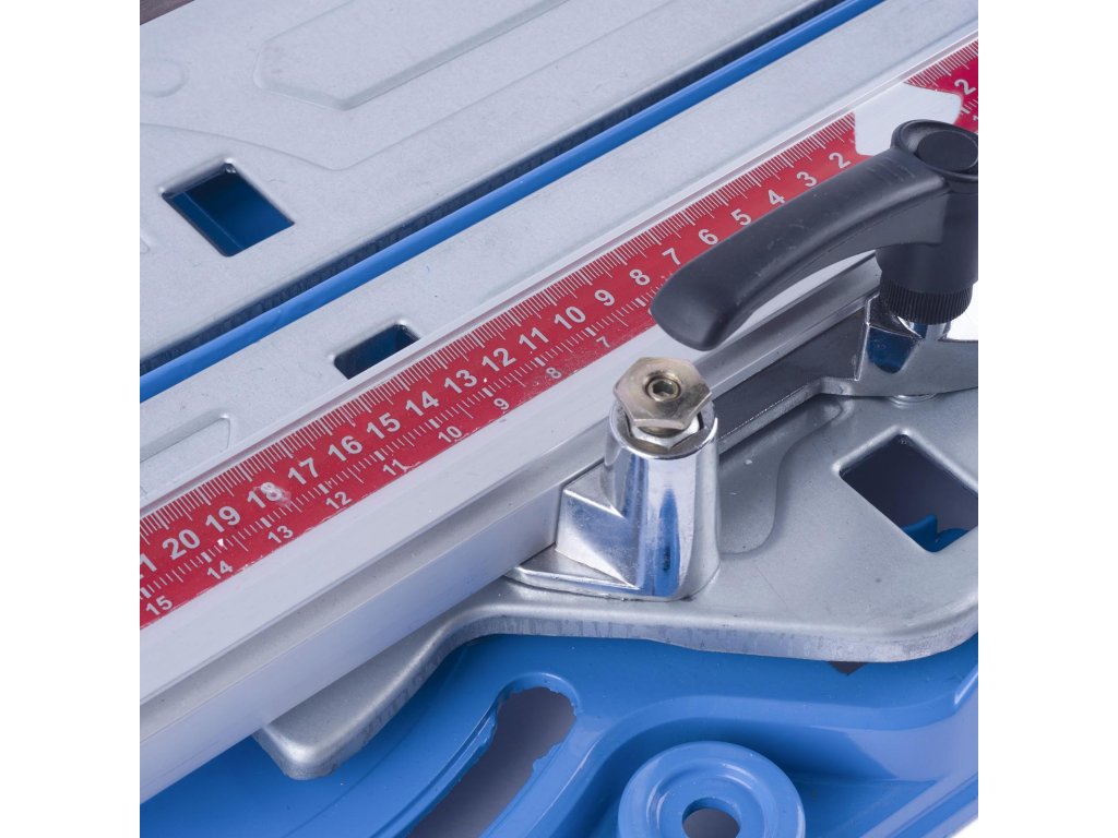 Profesionální řezačka pro diagonální a přímé řezání jednostranně i oboustranně glazovaných obkladů a dlažeb. Možnost seřízení vůle. Úhelník s pravítkem slouží pro rovné a úhlové řezání. Pojezd s 9 kuličkovými ložisky, z nichž 4 jsou nastavitelná pro zajištění přesnosti při řezání a dokonalý skluz.