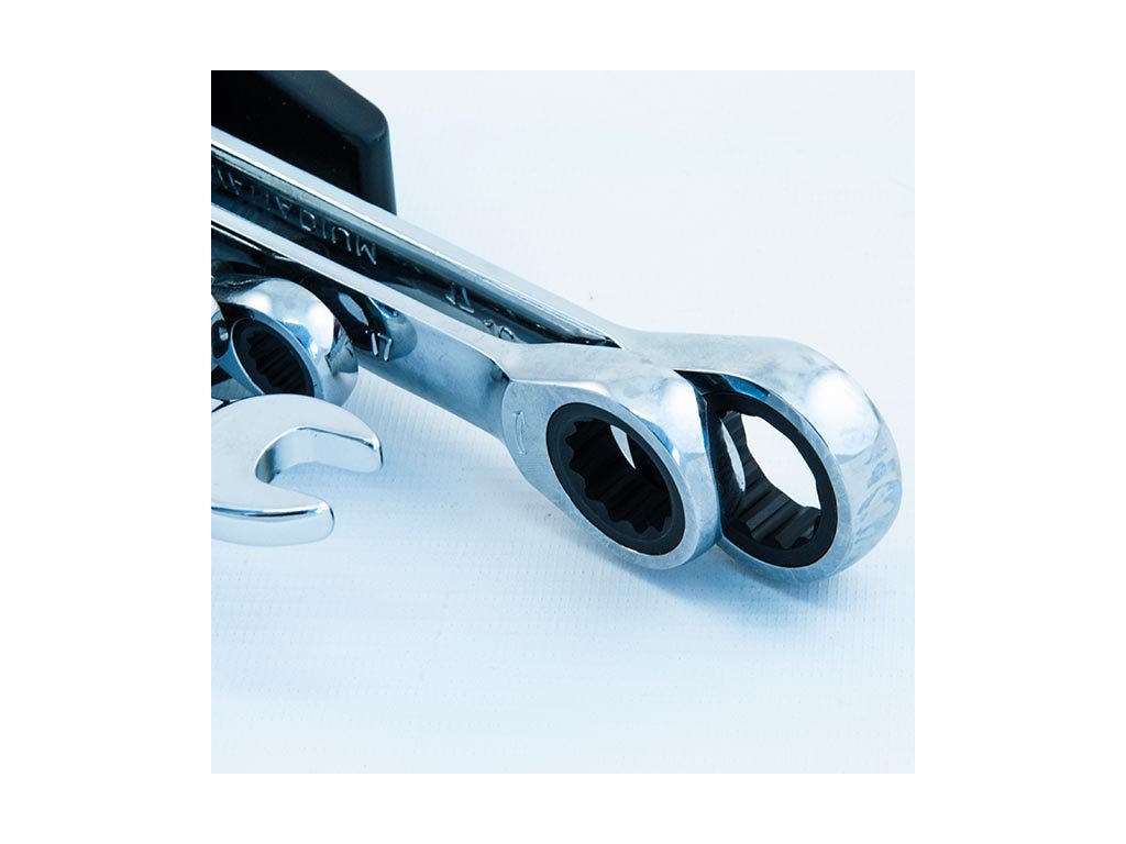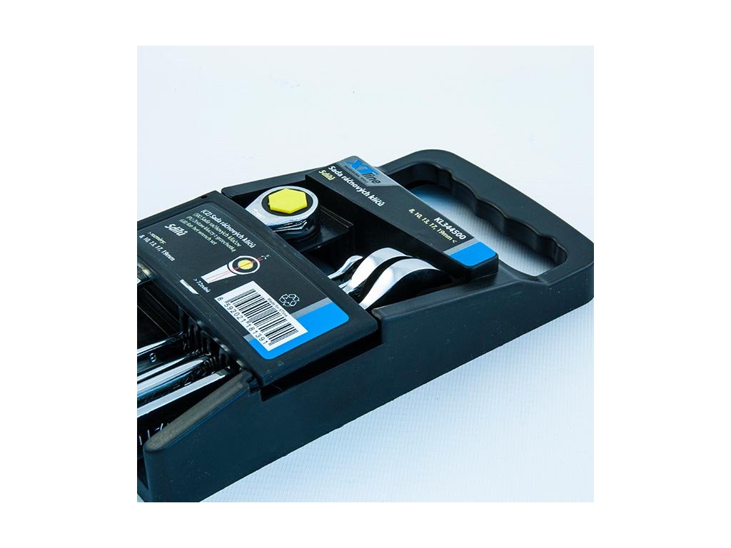 Sada ráčen umožňuje utahování a povolování šroubů bez sejmutí klíče z matice. Ráčna má kvalitní konstrukci z chrom-vanadiové oceli. Sada ráčnových klíčů je nepostradatelným pomocníkem při povolování zrezlých a zničených šroubů.