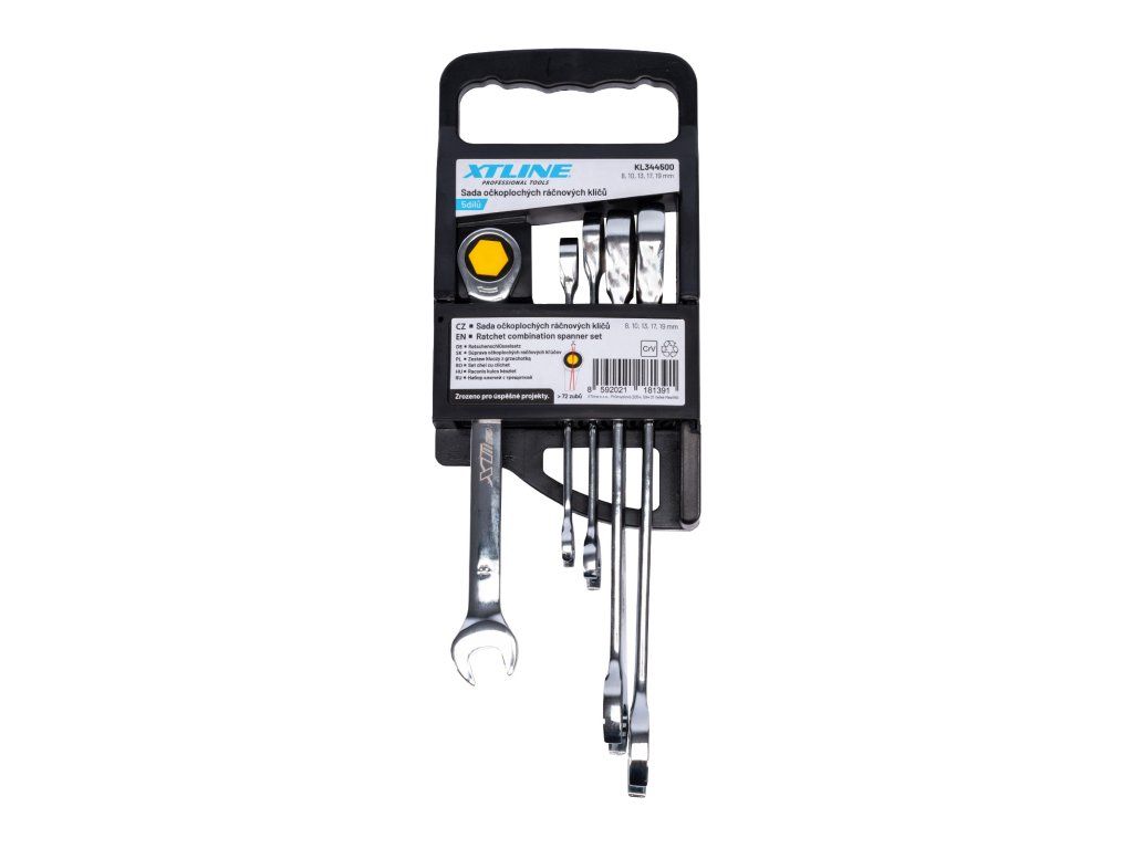 XTLINE Sada očkoplochých ráčnových klíčů 72 zubů, 5 dílů | 8-19 mm, plastový držák