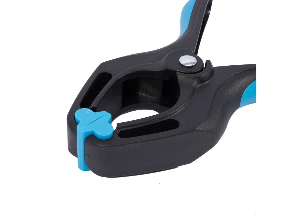 Jednoruční svěrka z kvalitního plastu je opatřená silnou pružinou. Pevná a odolná s rukojetí soft-grip pro komfortní uchopení. Pohyblivé, výkyvné čelisti se přizpůsobí i oblým předmětům. Vhodná k přidržení lepených částí, kabelů, lišt apod.