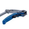 Rychloupínací svěrka je vyrobena z kvalitní oceli, povrch svěrky je pozinkovaný. Hlavní předností je větší rezerva energie, díky optimalizovanému profilu kolejnice pro rovnoměrné napnutí, zejména při maximálním využití upínacího rozsahu.