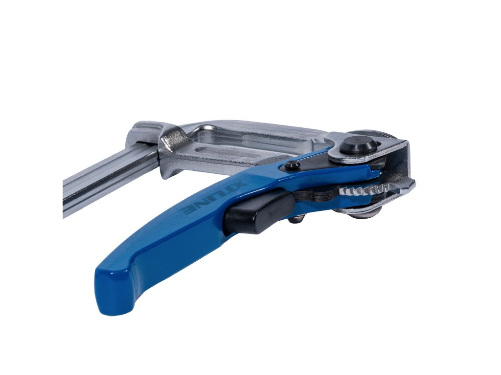 Rychloupínací svěrka je vyrobena z kvalitní oceli, povrch svěrky je pozinkovaný. Hlavní předností je větší rezerva energie, díky optimalizovanému profilu kolejnice pro rovnoměrné napnutí, zejména při maximálním využití upínacího rozsahu.