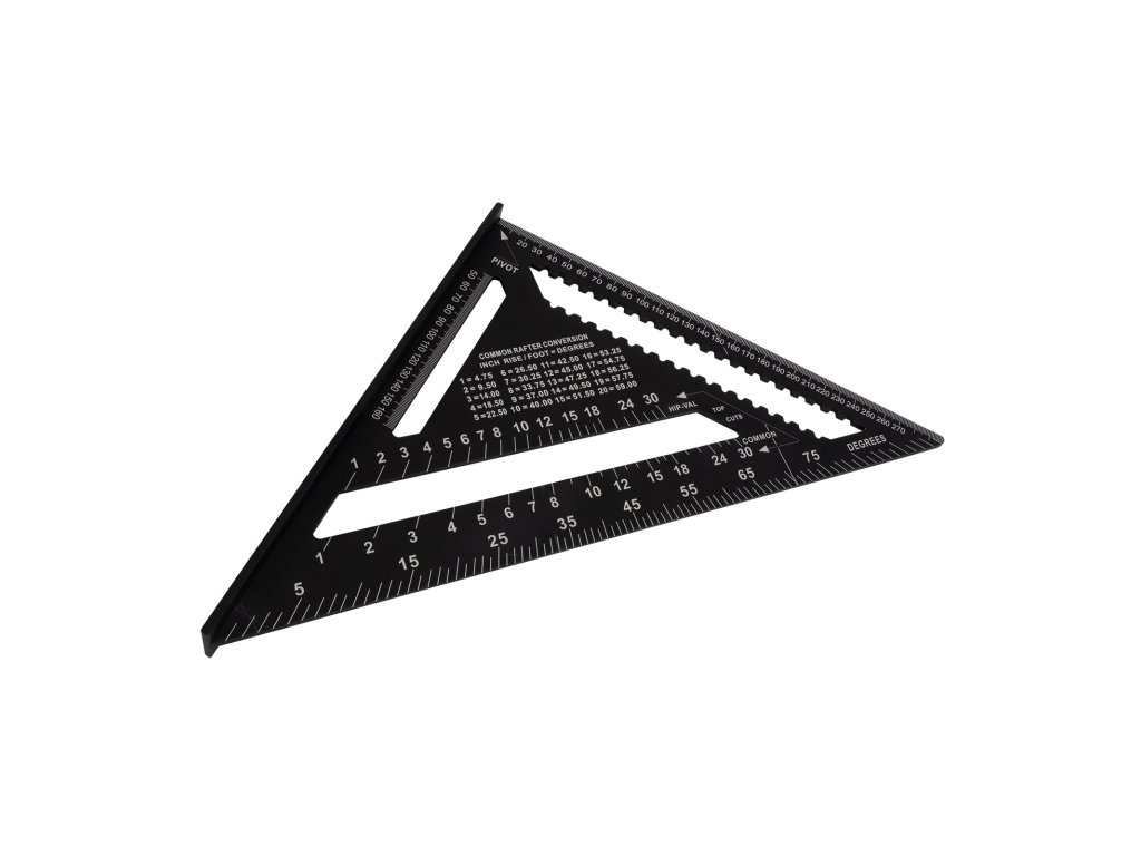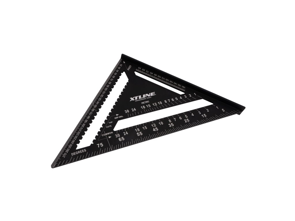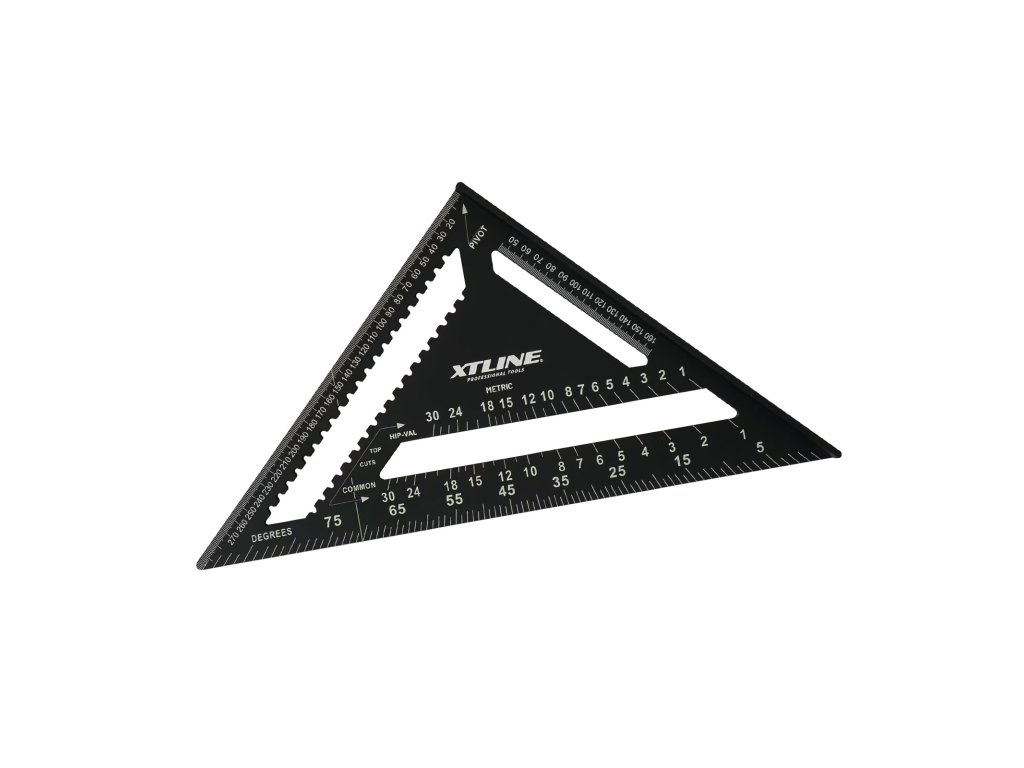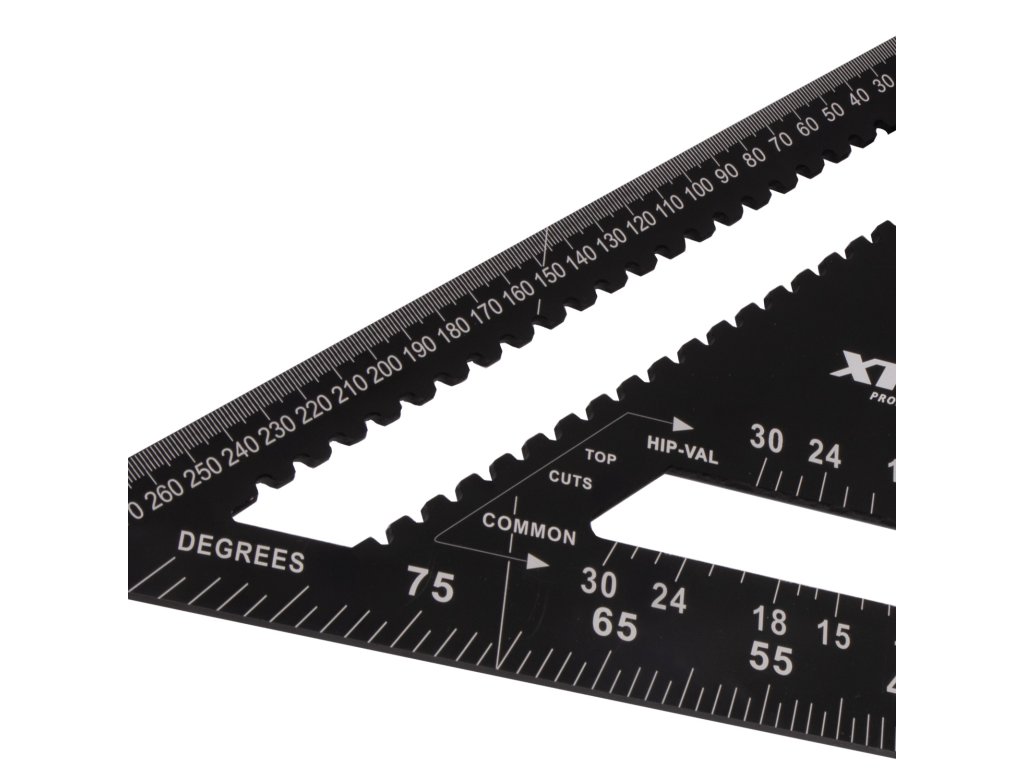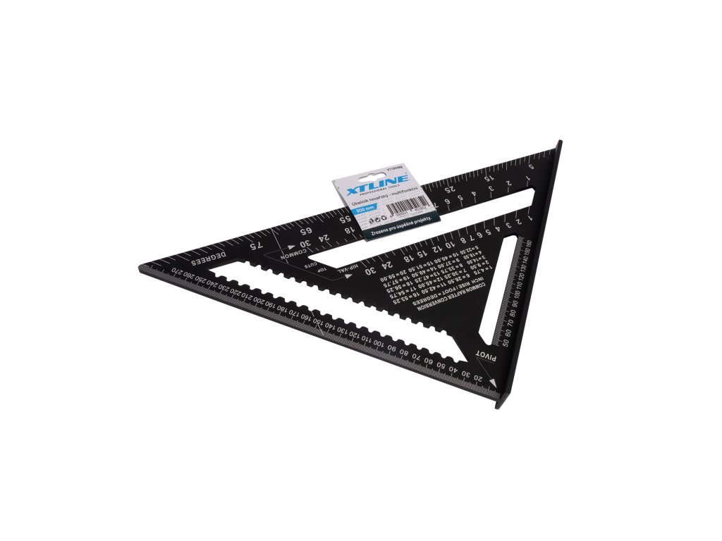 Tesařský úhelník, známý též jako „speed square“, je multifunkční pomůckou pro mnoho řemesel. Kvalitní slitina hliníku a přesně frézované hrany zajišťují maximální přesnost a odolnost. Úhelník umožňuje rychle a přesně vytyčit úhly 90° a 45°. Díky robustní konstrukci jej lze použít jako praktické vodítko pro kotoučovou pilu při řezání příčných i šikmých řezů. Víceúčelovost úhelníku spočívá také v tom, že můžete využít vnitřních zářezů na stupnici pro tužku nebo rýsovací nůž a použít tak úhelník jako rejsek. Další vlastností je úhloměr pro určení nebo vytyčení běžně používaných úhlů. Nechybí stupnice pro vyměření běžných, nárožních a úžlabních krokví pro tesaře. Úhelník by díky své všestrannosti a praktičnosti neměl chybět ve výbavě žádného kutila ani řemeslníka.