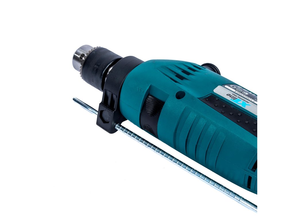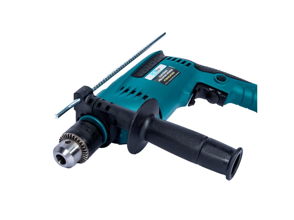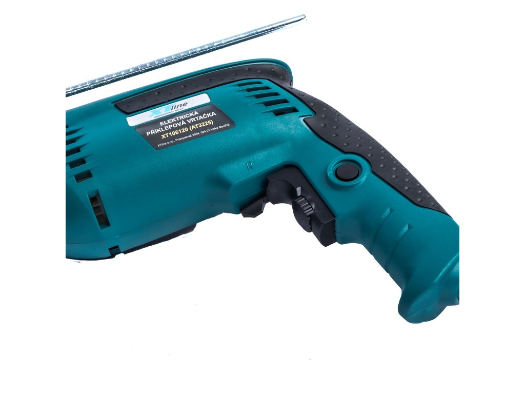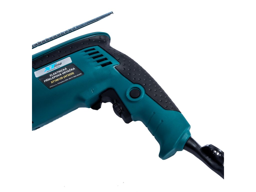 Příklepová vrtačka s kovovým sklíčidlem slouží pro přesné snadné vrtání do všech materiálů, díky příklepu i do stavebních materiálů. Vrtačka je dobře ovladatelná díky velkým vypínačům, přepínači směru chodu a plynulé regulaci otáček.