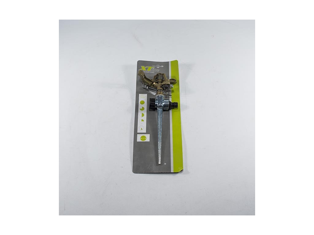 Celokovový kruhový zavlažovač s možností nastavení kruhového výseku. Pozinkovaný podstavec s připojením na vodu.