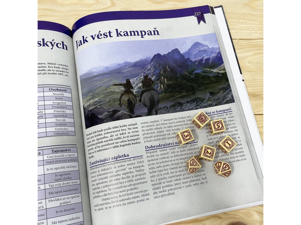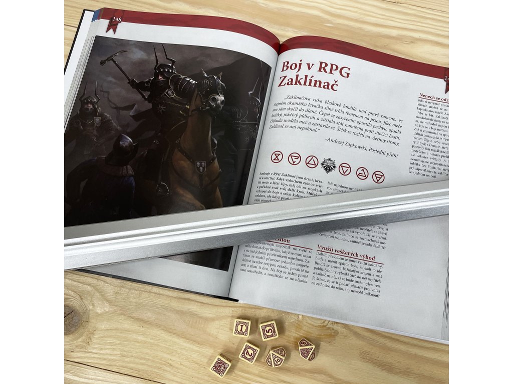 Zaklínač: Hra na hrdiny je RPG založené na populární sérii fantasy románů Zaklínač od polského autora Andrzeje Sapkowského, a zejména na videoherní adaptaci od společnosti CD Projekt Red. Ponoř se do světa monster Hra je navržena tak, aby hráče vtáhla do světa Zaklínače. Umožní jim vytvořit vlastní postavy (zaklínače, kouzelníky, čarodějky nebo třeba bardy) a vydat se vstříc dobrodružství v temném prostředí obývaném příšerami. Důraz je kladen na vyprávění příběhu, vývoj postavy a rozhodování, přičemž mechaniky jsou přizpůsobeny tak, aby odrážely témata a atmosféru morálně komplikovaného světa A. Sapkowského. Hra čerpá ze systému Interlock, který se používá i v dalších RPG hrách společnosti Talsorian Games. Nabízí vyvážený a flexibilní soubor pravidel, jež umožňuje plynulé hraní a podporuje kreativitu a improvizaci. Vše, co potřebuješ vědět Zaklínač: Hra na hrdiny je základní příručkou pravidel, poskytuje komplexní návod pro tvorbu postavy, boj, magii a další aspekty hraní. Zároveň nabízí informace o Kontinentu, včetně jeho historie, kultur a bestiáře. Pro hru Zaklínač: Hra na hrdiny je třeba specifická sada kostek obsahující 6k6, 1k% a 1k10. Všechny tyto kostky najdeš v sadě kostek - The Witcher RPG nebo v krásné, perleťově béžové sadě Sada kostek pro RPG Zaklínač. Odkazy Deníky (pdf) Recenze Recenze na imago blogu od Gergona a jeho videorozbor příručky: