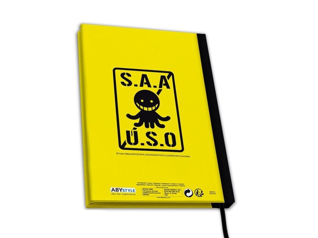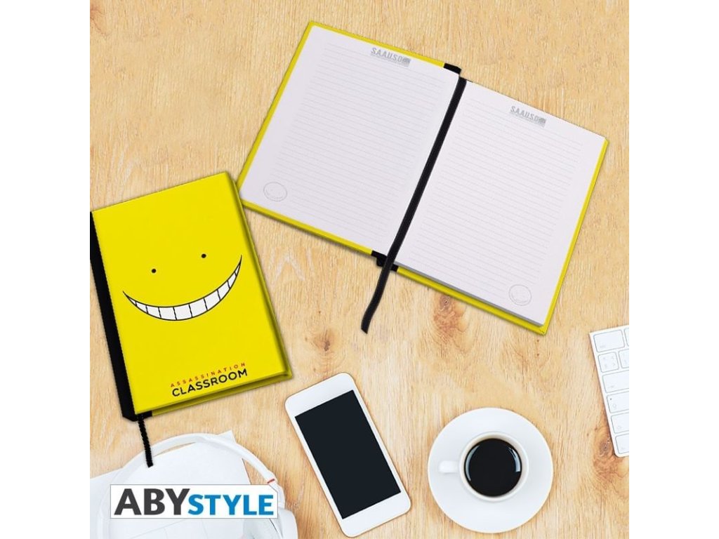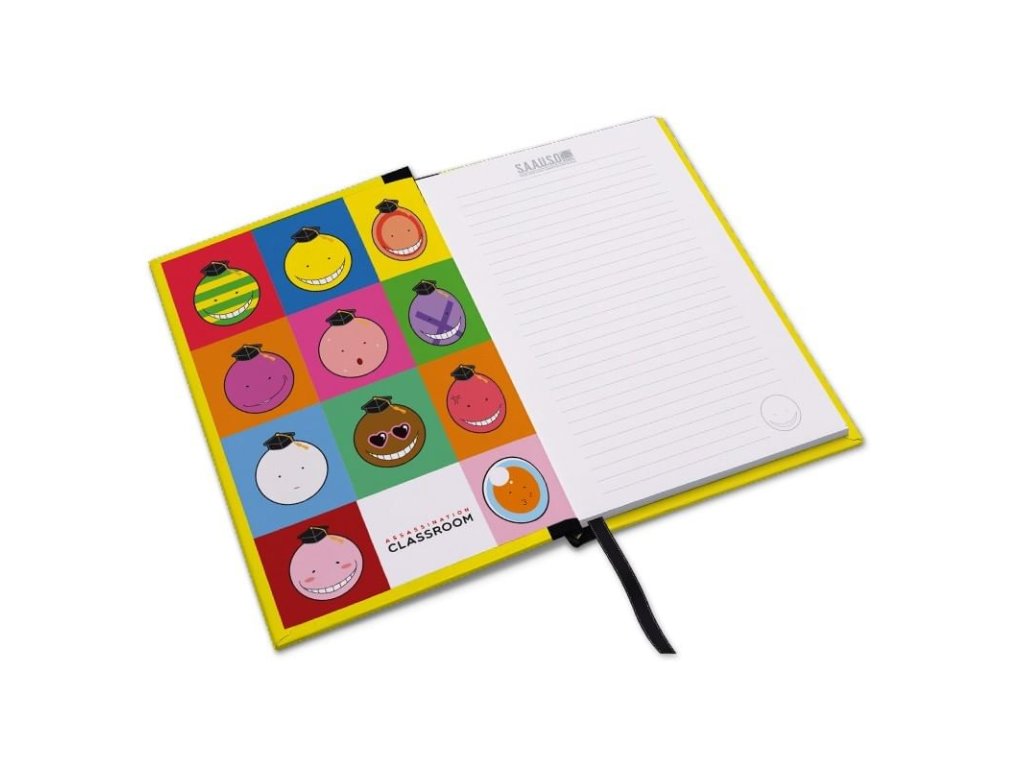 Krásný linkovaný zápisník s učitelem a mimozemskou chobotničkou Koro Senseiem z japonské mangy Assassination Classroom se hodí pro tvé nápady i poznámky! Vnitřní stranu desek zdobí obrázky Korova obličeje, zbarvené do různých odstínů podle jeho momentálních nálad. Zápisník je v pevných deskách a jeho součástí je záložka.
