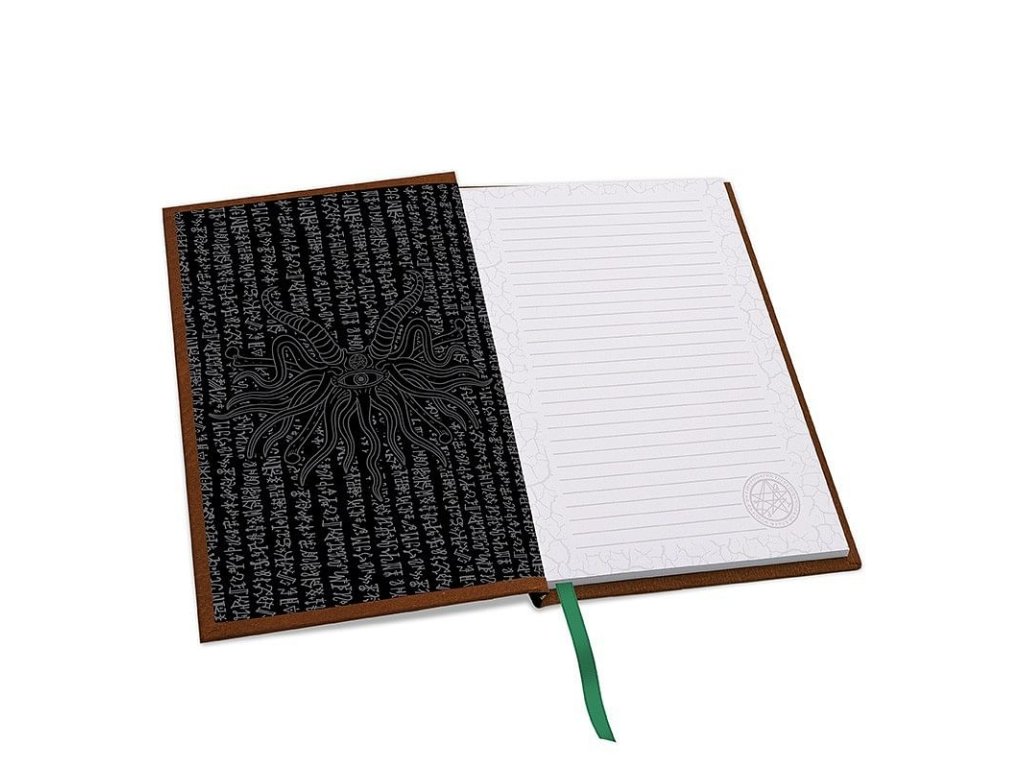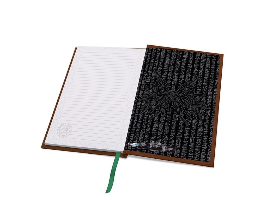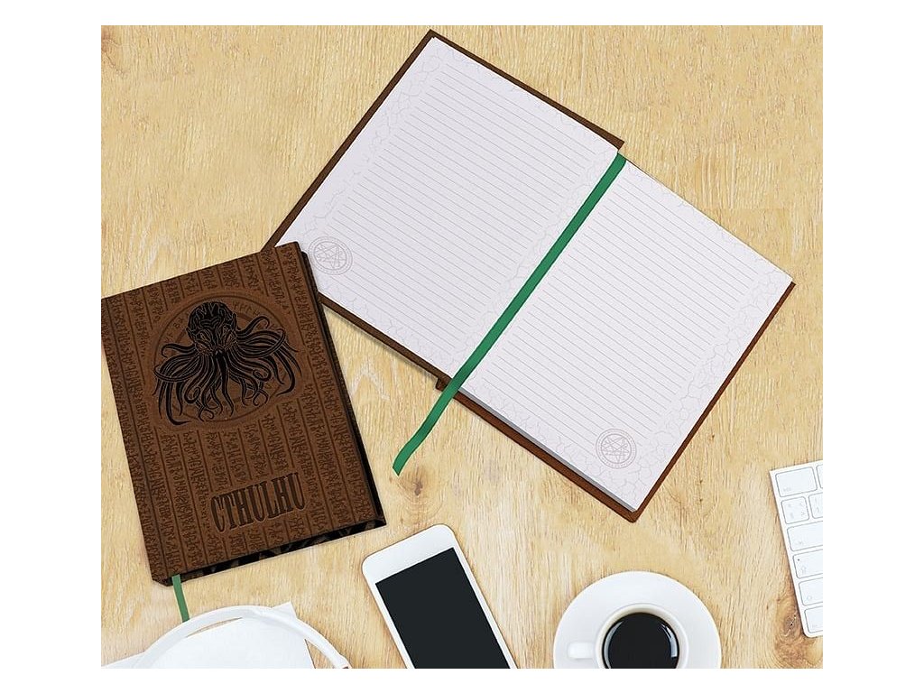 Ať už patříte mezi uctívače prastarých nebo se snažíte přijít na kloub podivným jevům z neuchopitelného neznáma, zápisník pro fanoušky hororů Call of Cthulhu je tím pravým pro vás! Linkovaný zápisník v pevných deskách imitujících kůži zdobí prastaré božstvo a zlověstné hieroglyfy. Nechybí záložka, uvnitř pak naleznete řadu grafických prvků odkazujících na svět H. P. Lovecrafta.
