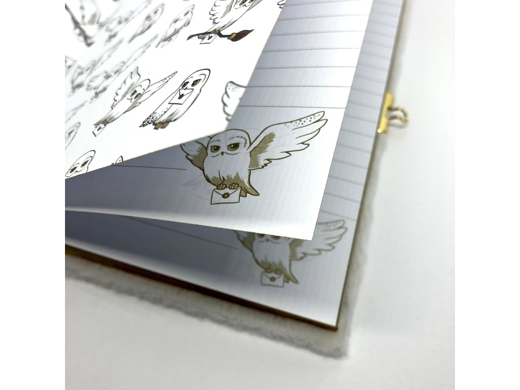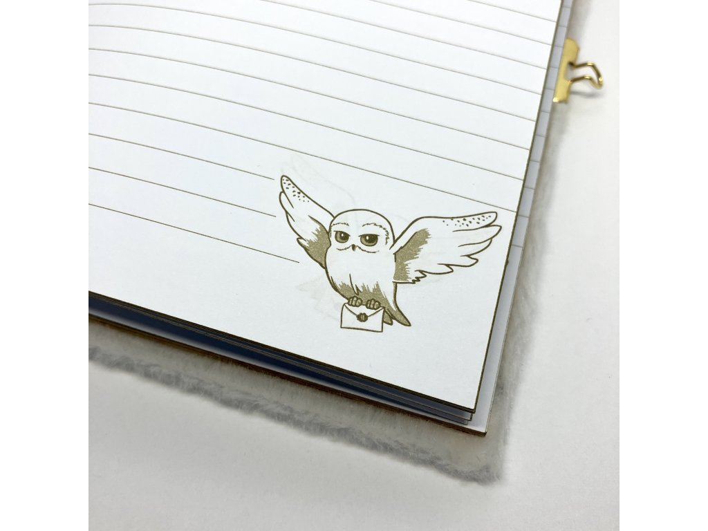 Krásný zápisník pro malé i velké fanoušky Harry Pottera má pevné desky potažené hebkým plyšem s vyšitou sovou Hedvikou na obou stranách. Zápisník je linkovaný, Hedviku najdete také na obrázcích uvnitř.