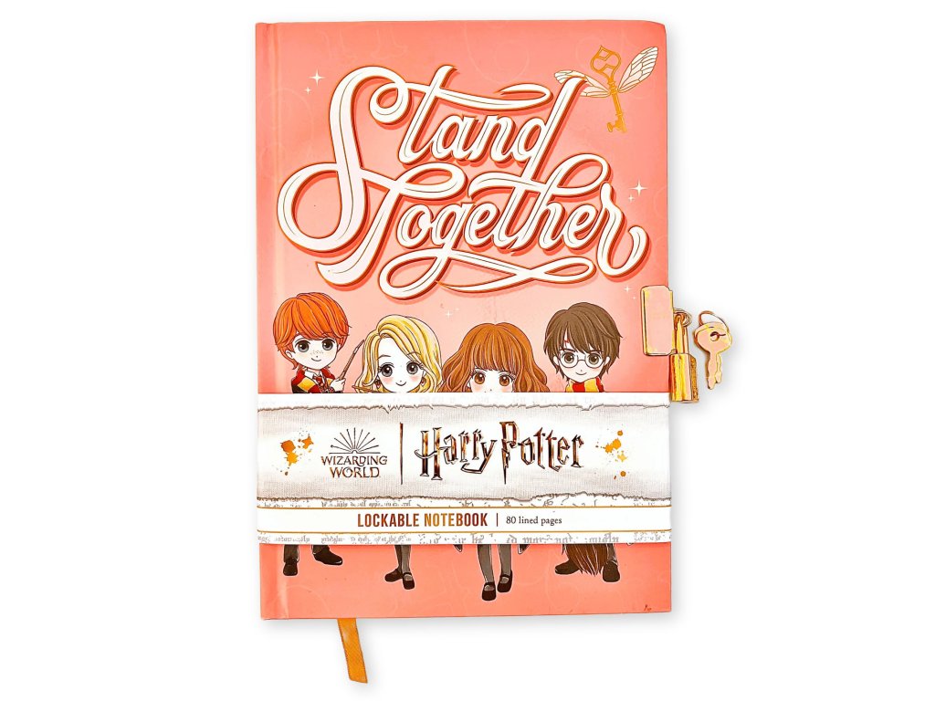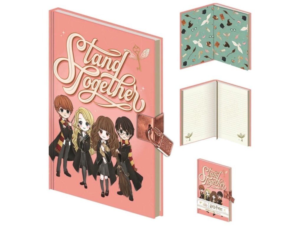 Originální zápisník pro fanoušky Harry Pottera - zamkněte svá tajemství pomocí zámečku, aby nikam neutekla! Zápisník v pevných deskách je linkovaný a zdobí ho grafika věrných přátel z Bradavic - Harryho, Hermiony, Rona a Lenky Láskorádové.