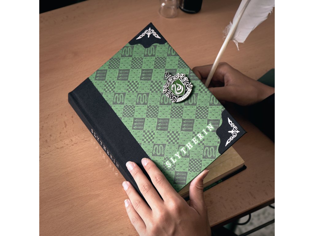 Zápisník ve zmijozelském stylu v pevných deskách na motivy knih a filmů o čarodějnickém učni Harry Potterovi.