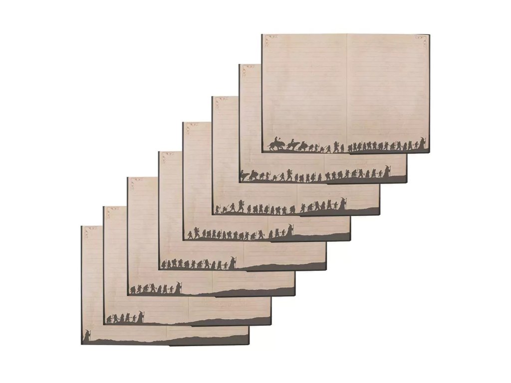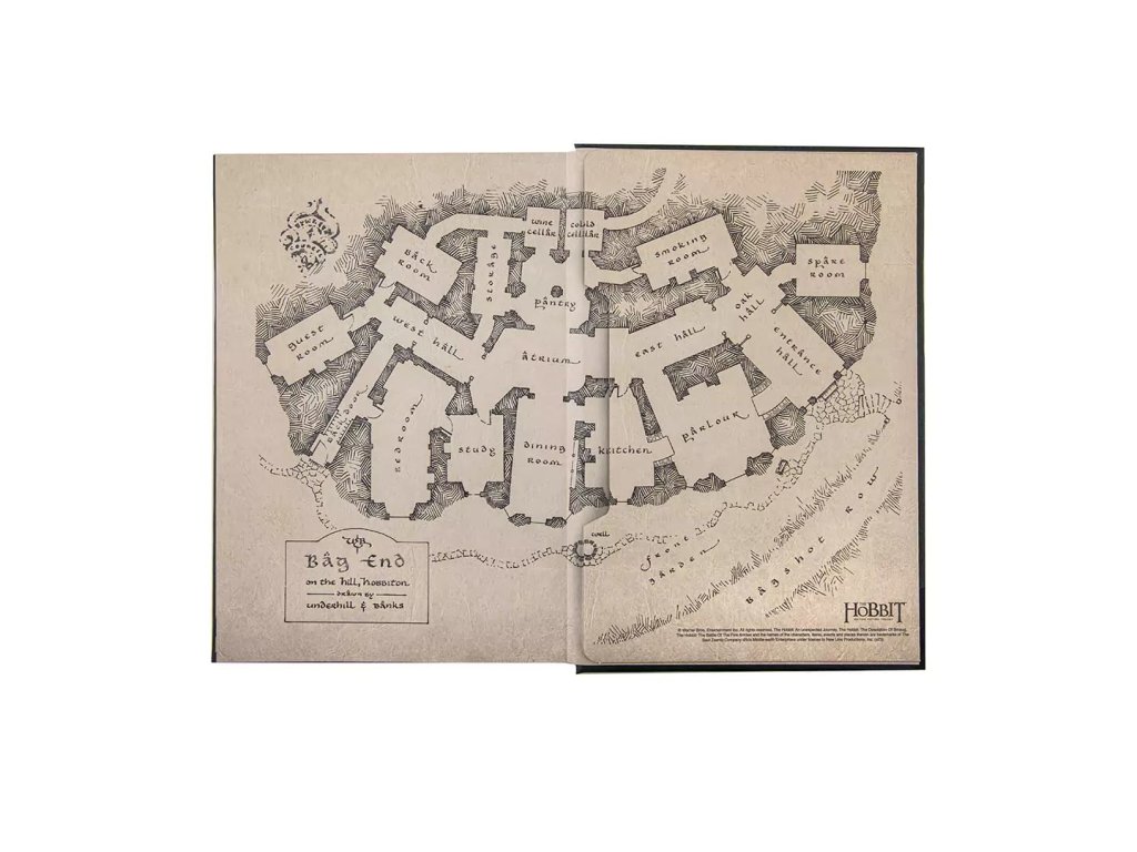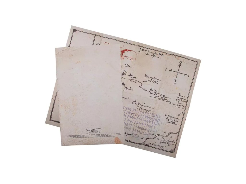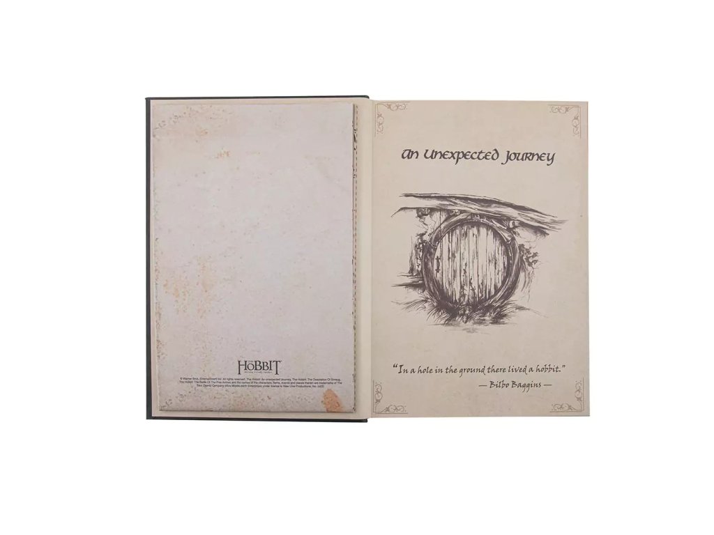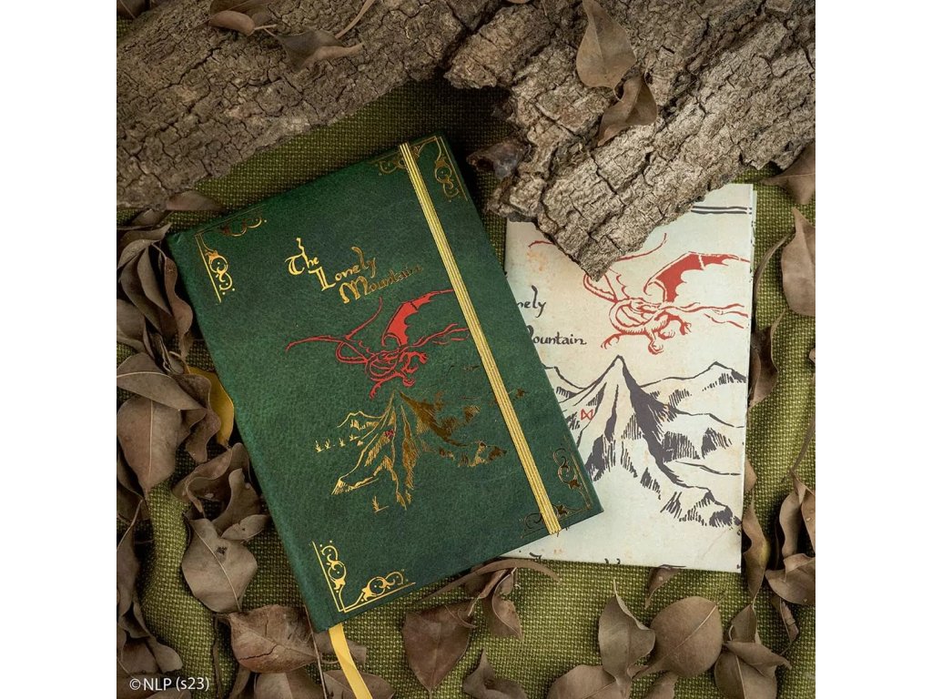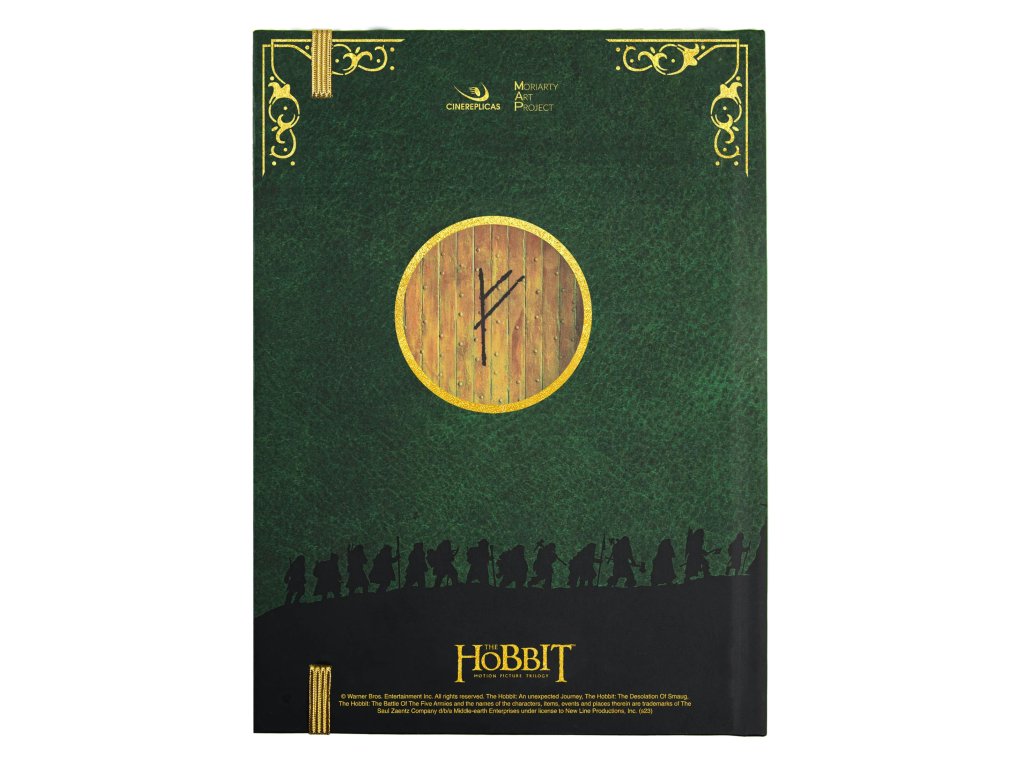 Výpravný zápisník pro čtenáře a fanoušky Hobita obsahuje řadu krásných grafických prvků, včetně Thorinovy mapy. Zápisník je v pevných deskách, linkovaný a zavírá se pomocí gumičky.