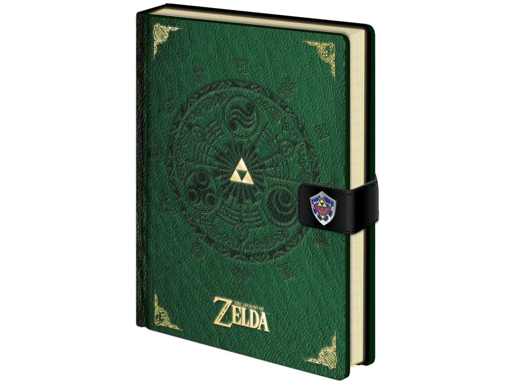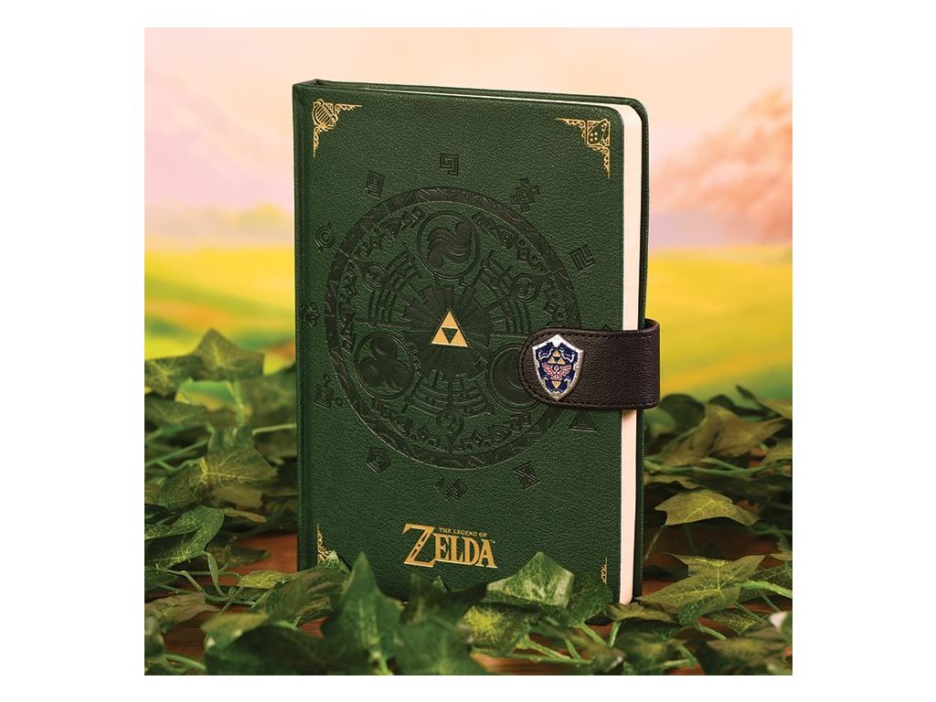 Hezký zelený zápisník pro všechny hráče a fanoušky videohry The Legend of Zelda od Nintenda se zavírá za pomoci přezky po straně a bude dobrým společníkem ať už herním nebo neherním zápiskům a poznámkám.