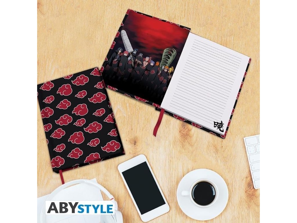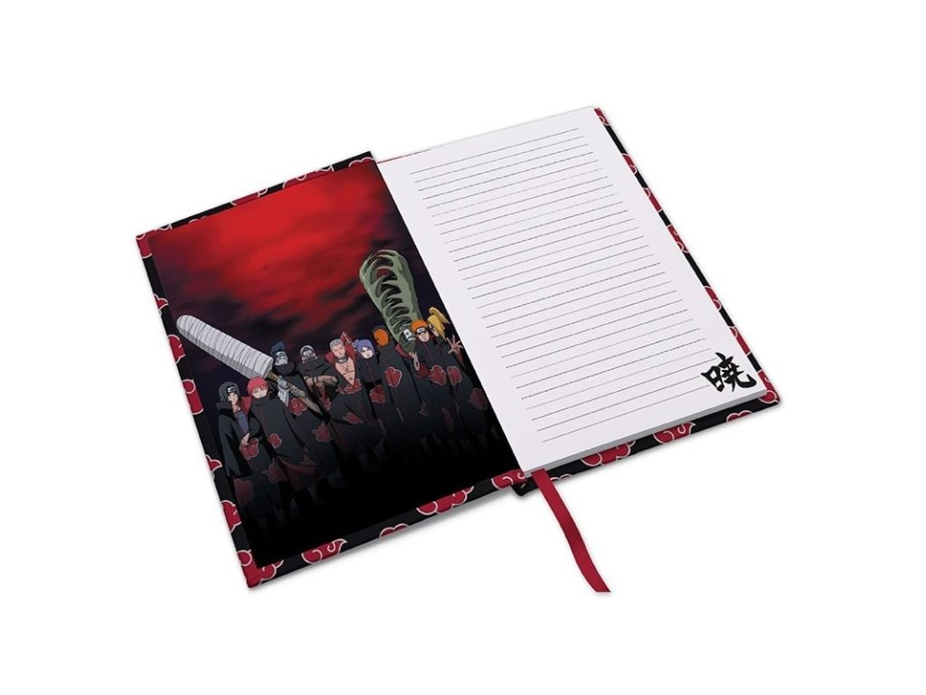 Zápisník v pevných deskách s grafikou mraku Akatsuki z oblíbené japonské mangy Naruto Shippuden je připravený k vašim službám! Linkovaný zápisník se záložkou pro malé i velké ninjy.