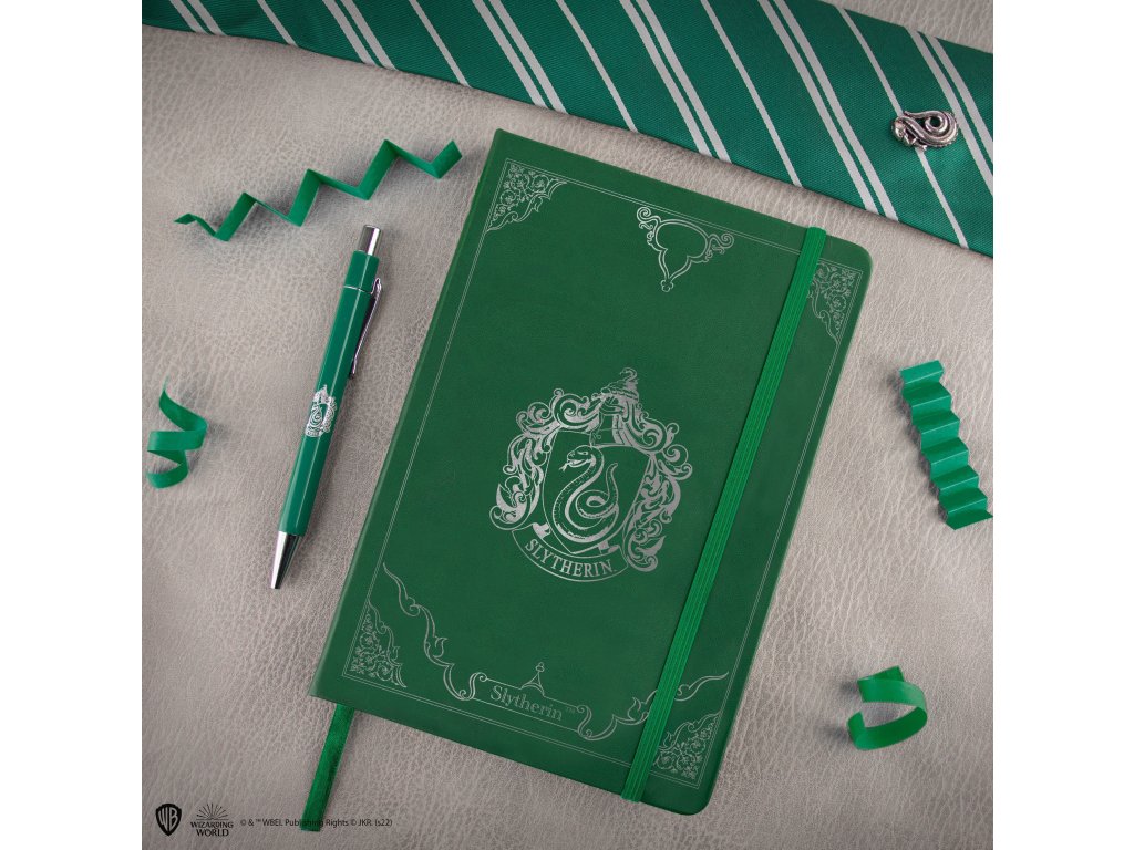 Zápisník s propiskou Harry Potter – Zmijozel, anglicky Slytherin, je dokonalý kouzelnický doplněk pro každého, kdo patří do této koleje plné cílevědomých studentů. Stylová sada obsahuje elegantní zápisník se stužkovou záložkou, motivem bradavické koleje a propisku v tradičních zeleno-stříbrných barvách. Zápisník má kombinované stránky – linkované i čisté, takže se hodí jak na poznámky, tak na kresby nebo plánování dobrodružství. Vše je pečlivě zabaleno v dárkové krabičce, připraveno potěšit každého fanouška světa Harryho Pottera.Jak vypadají sady bradavických kolejí?