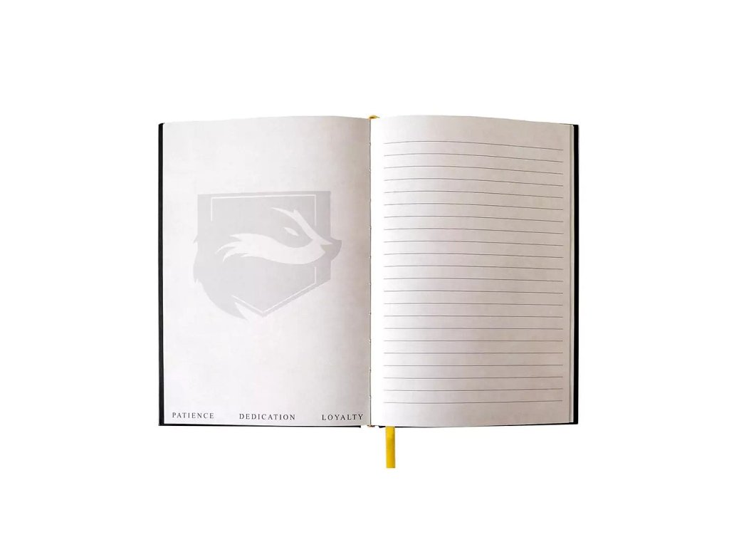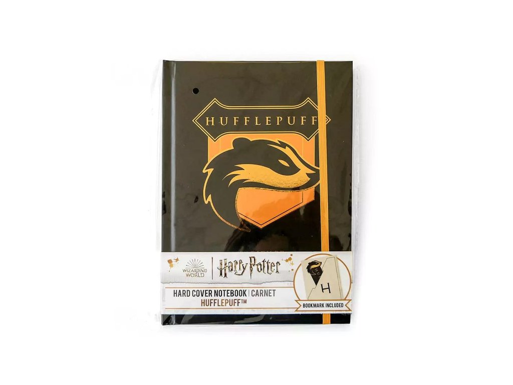 Krásný zápisník v pevných deskách se symbolem koleje Mrzimor z Harry Pottera a stylová papírová záložka v jednom! Skvělý dárek pro malé i velké kouzelníky z Bradavic.