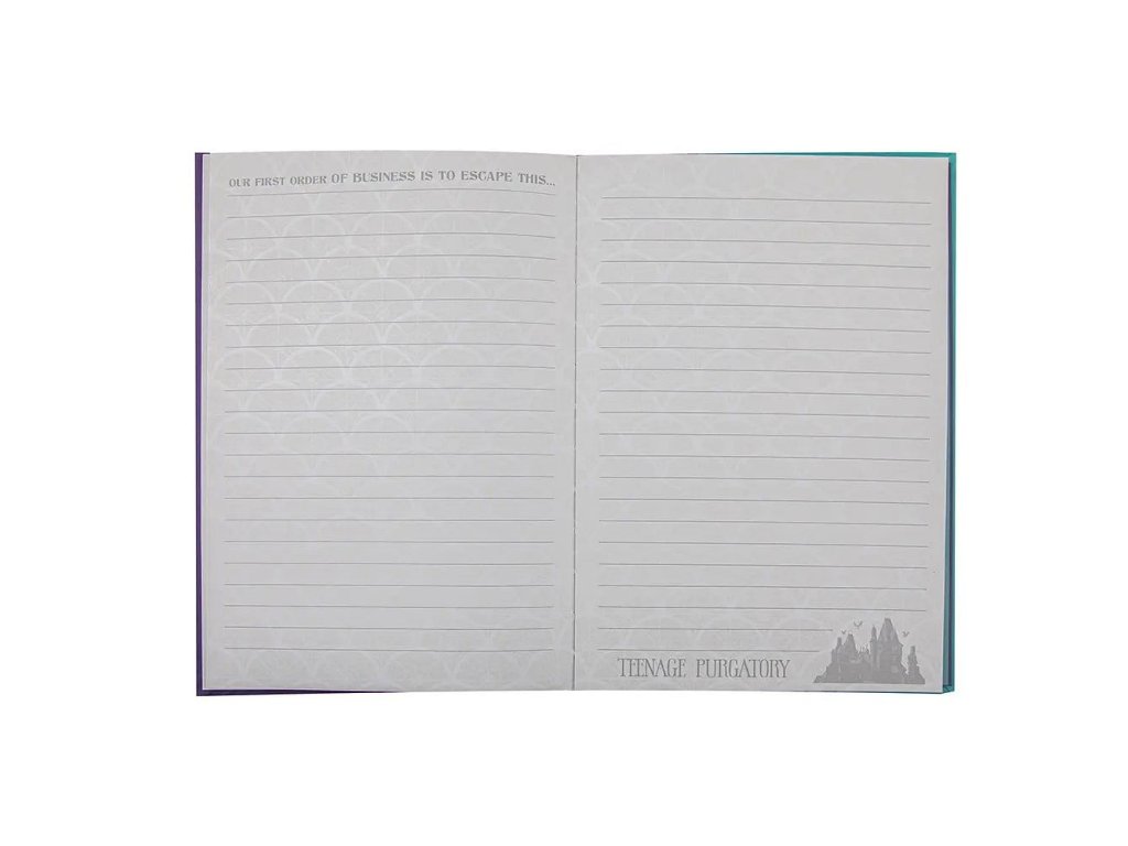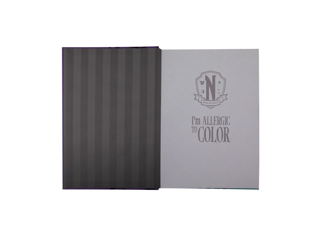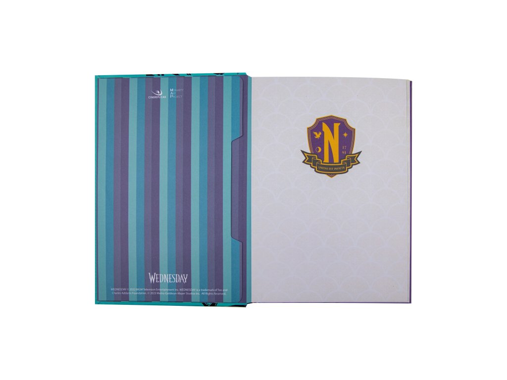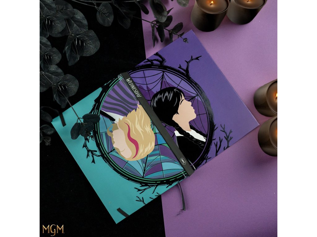 Hezký zápisník pro fanoušky seriálu Wednesday má pevné desky a bude skvělým společníkem pro poznámky, nápady či inspiraci všeho druhu. Zápisník je překlápěcí a tak může sloužit třeba na sdílení myšlenek dvou kamarádek jako jsou Wednesday a Enid. Zápisník je linkovaný, má zavírání pomocí gumičky a součástí je záložka.
